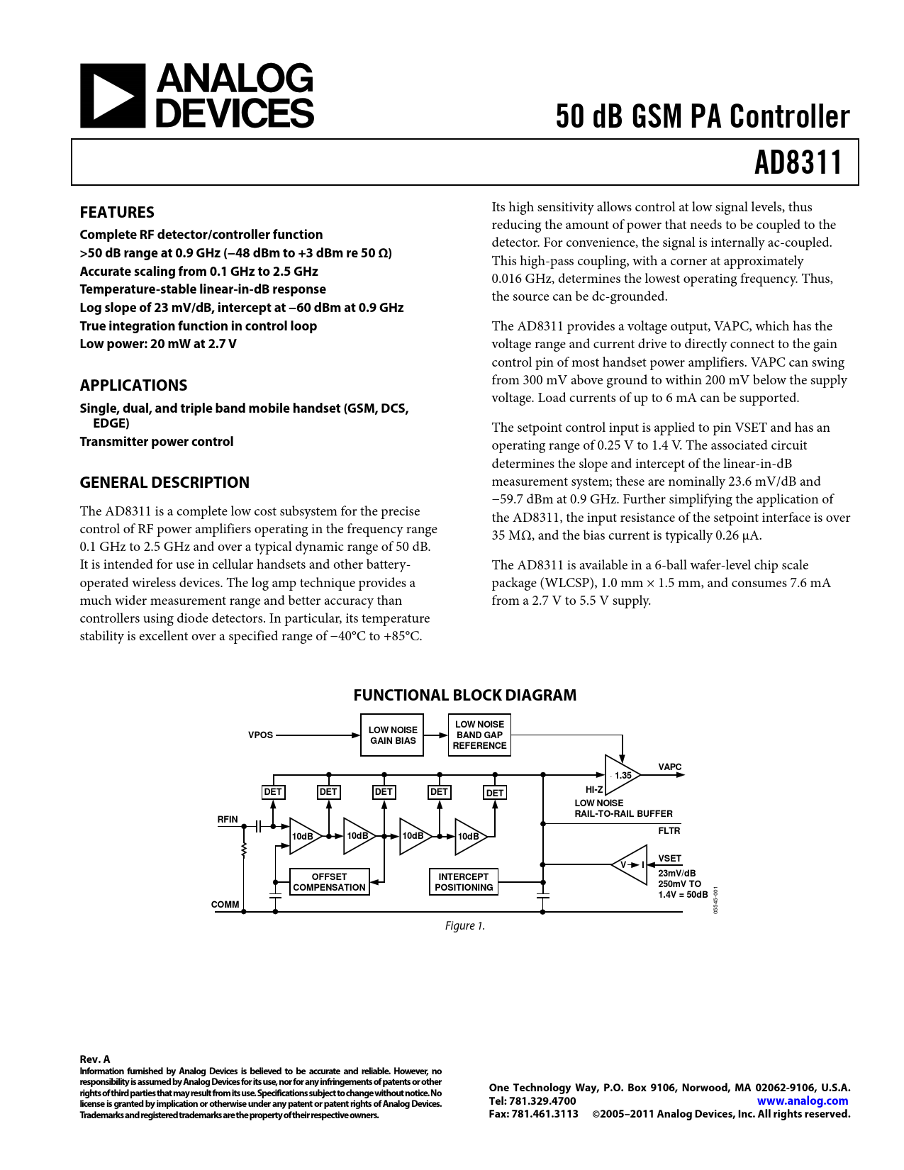 | 页数 / 页 | 24 / 1 — 50 dB GSM PA Controller. AD8311. FEATURES. Complete RF … |