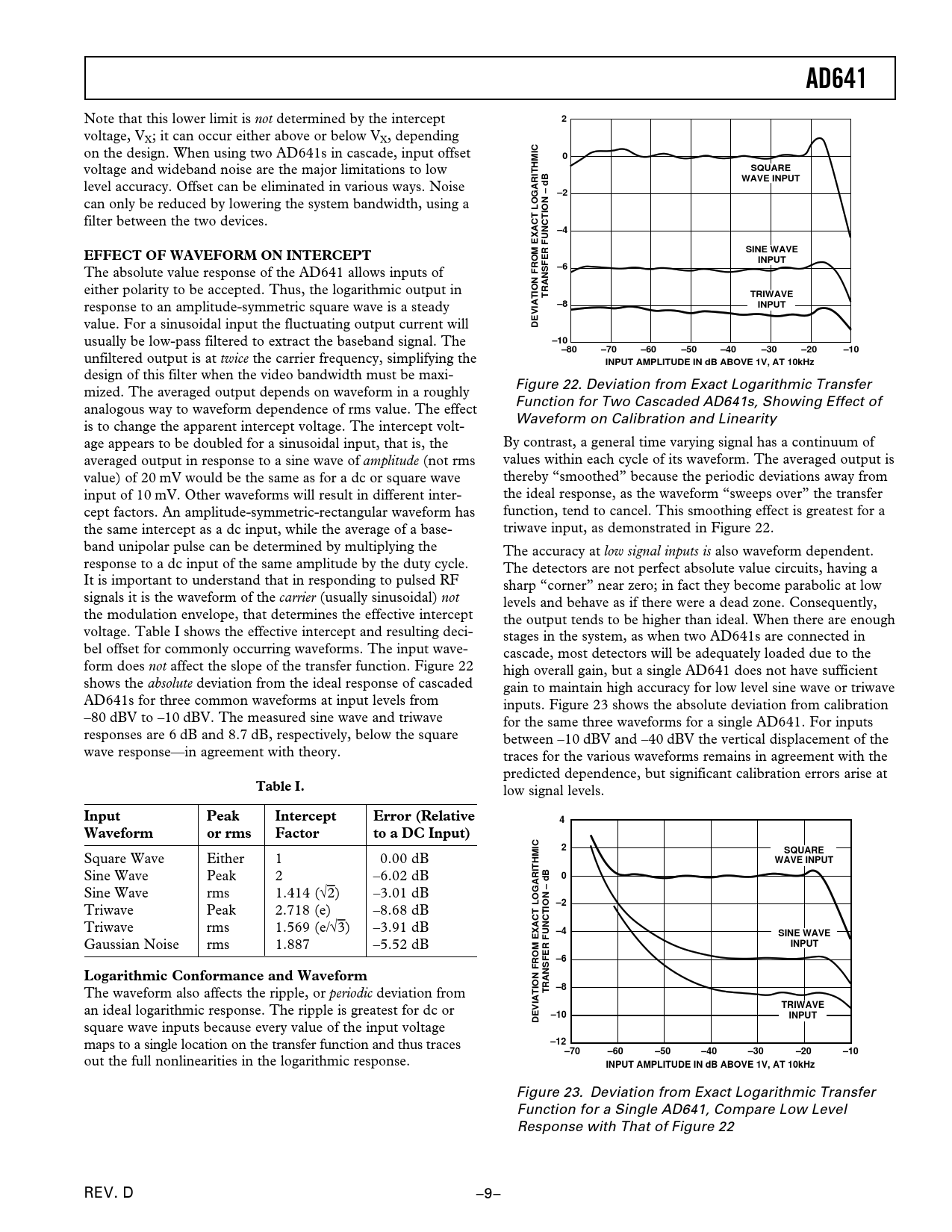 页数 / 页17 / 9 — AD641. SQUARE. WAVE INPUT. EFFECT OF WAVEFORM ON INTERCEPT. SINE WAVE. …