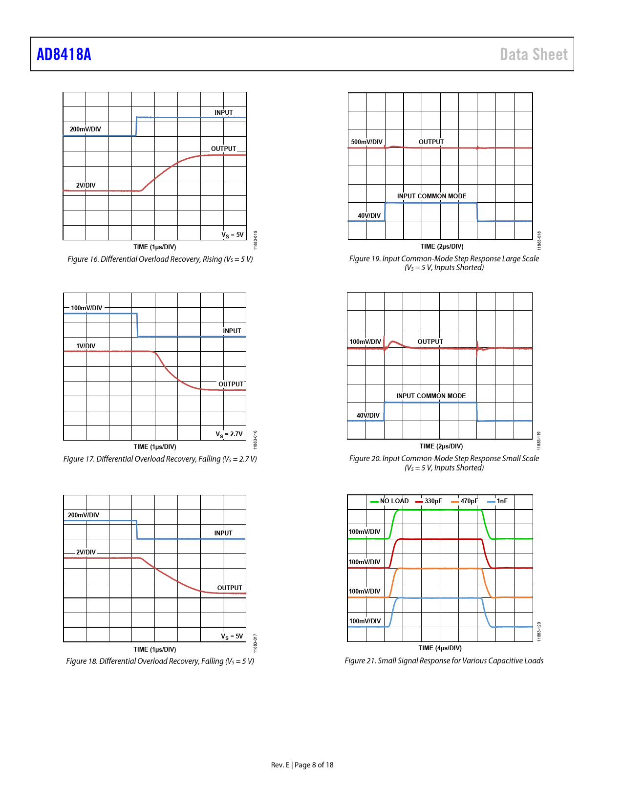 页数 / 页18 / 8 — AD8418A. Data Sheet. INPUT. 200mV/DIV. 500mV/DIV. OUTPUT. 2V/DIV. INPUT …