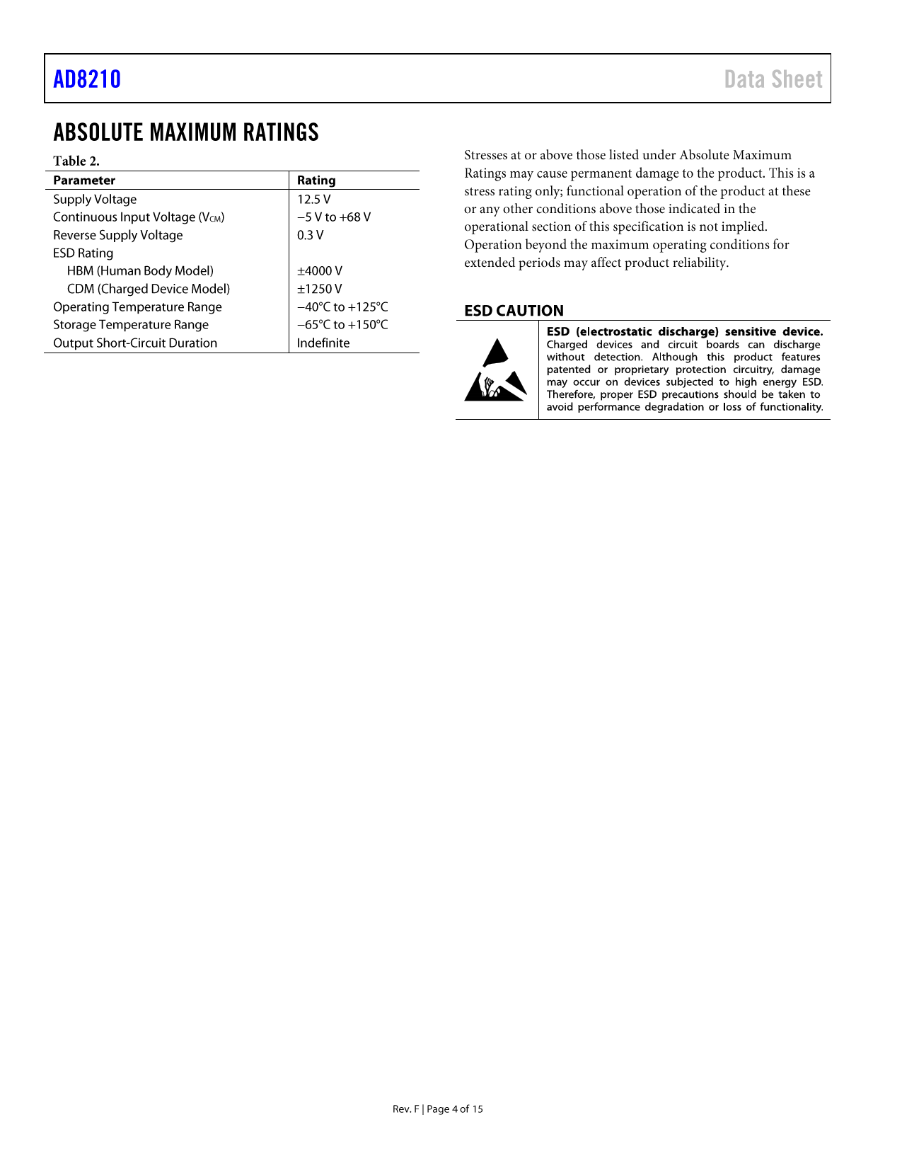 Datasheet AD8210 (Analog Devices) - 4