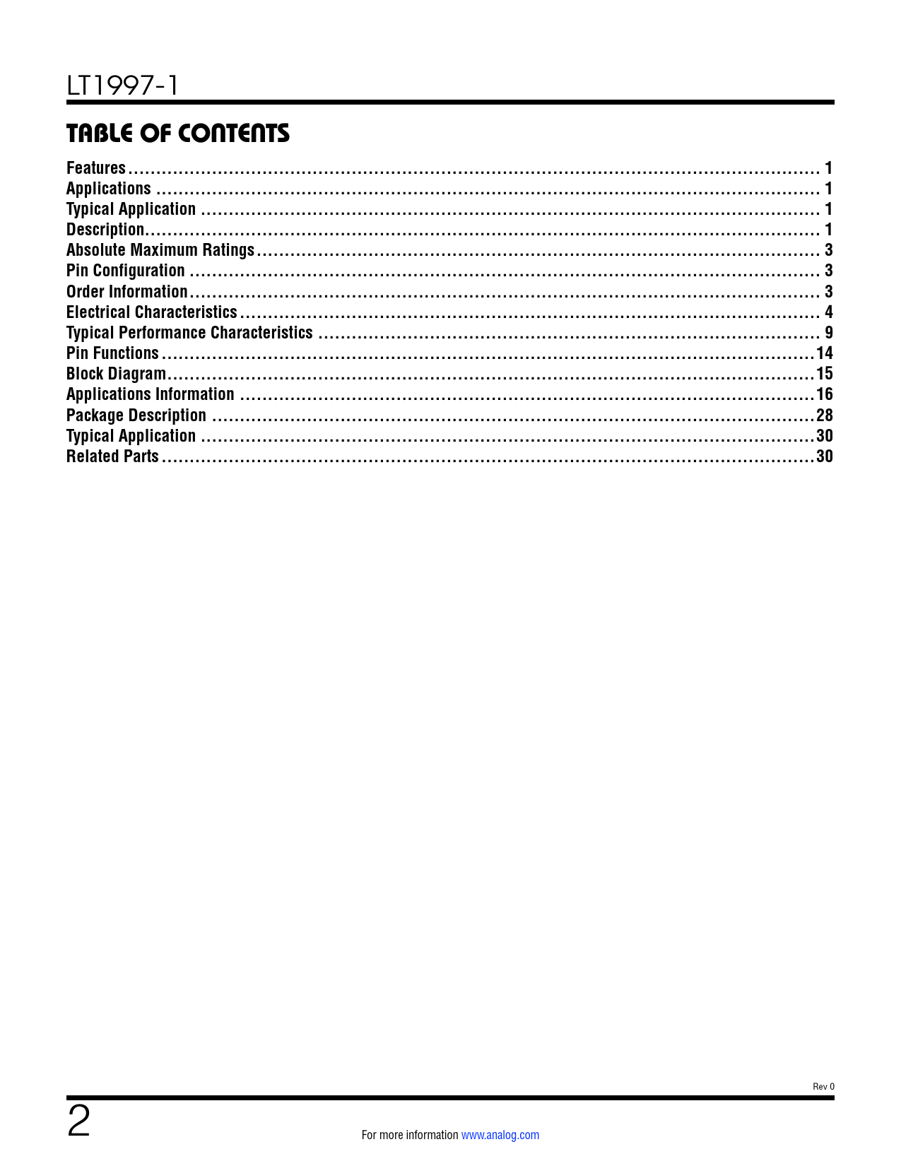 页数 / 页30 / 2 — TABLE OF CONTENTS Features .. 1. Applications ... 1. Typical Application …