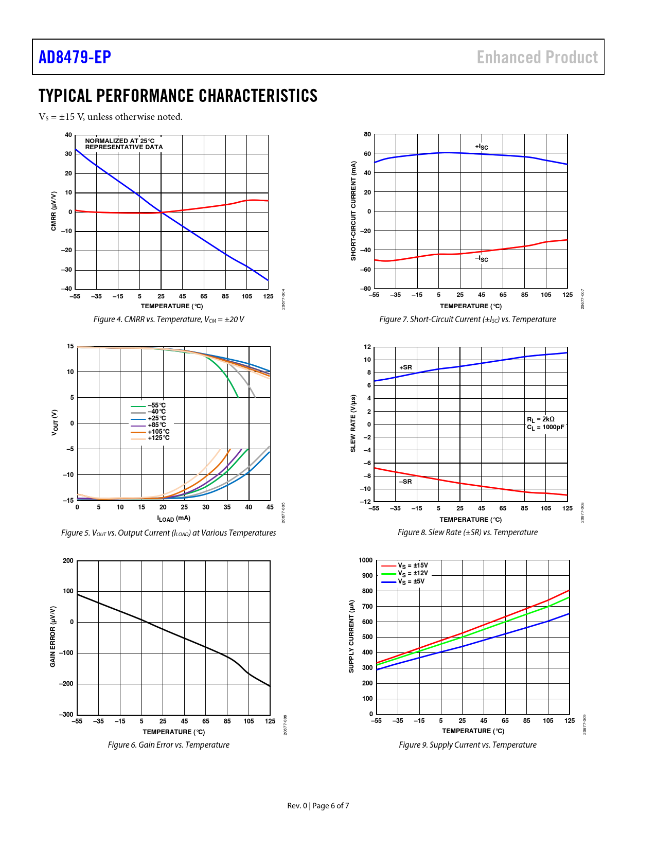 AD8479-EP Enhanced Product TYPICAL PERFORMANCE CHARACTERISTICS NORMALIZED AT 25°C REPRESENTATIVE DATA +ISC mA) ( NT V) V/ (µ
