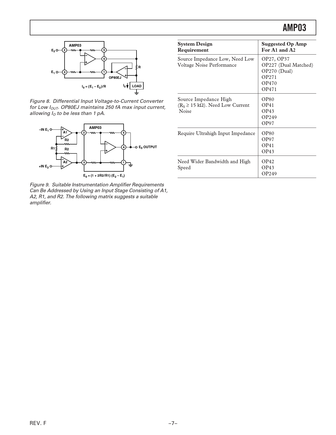 页数 / 页8 / 7 — AMP03. System Design. Suggested Op Amp. Requirement. For A1 and A2. …