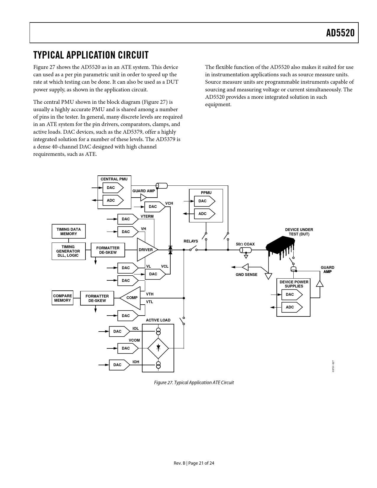 页数 / 页24 / 21 — AD5520. TYPICAL APPLICATION CIRCUIT. CENTRAL PMU. DAC. GUARD AMP. PPMU. …