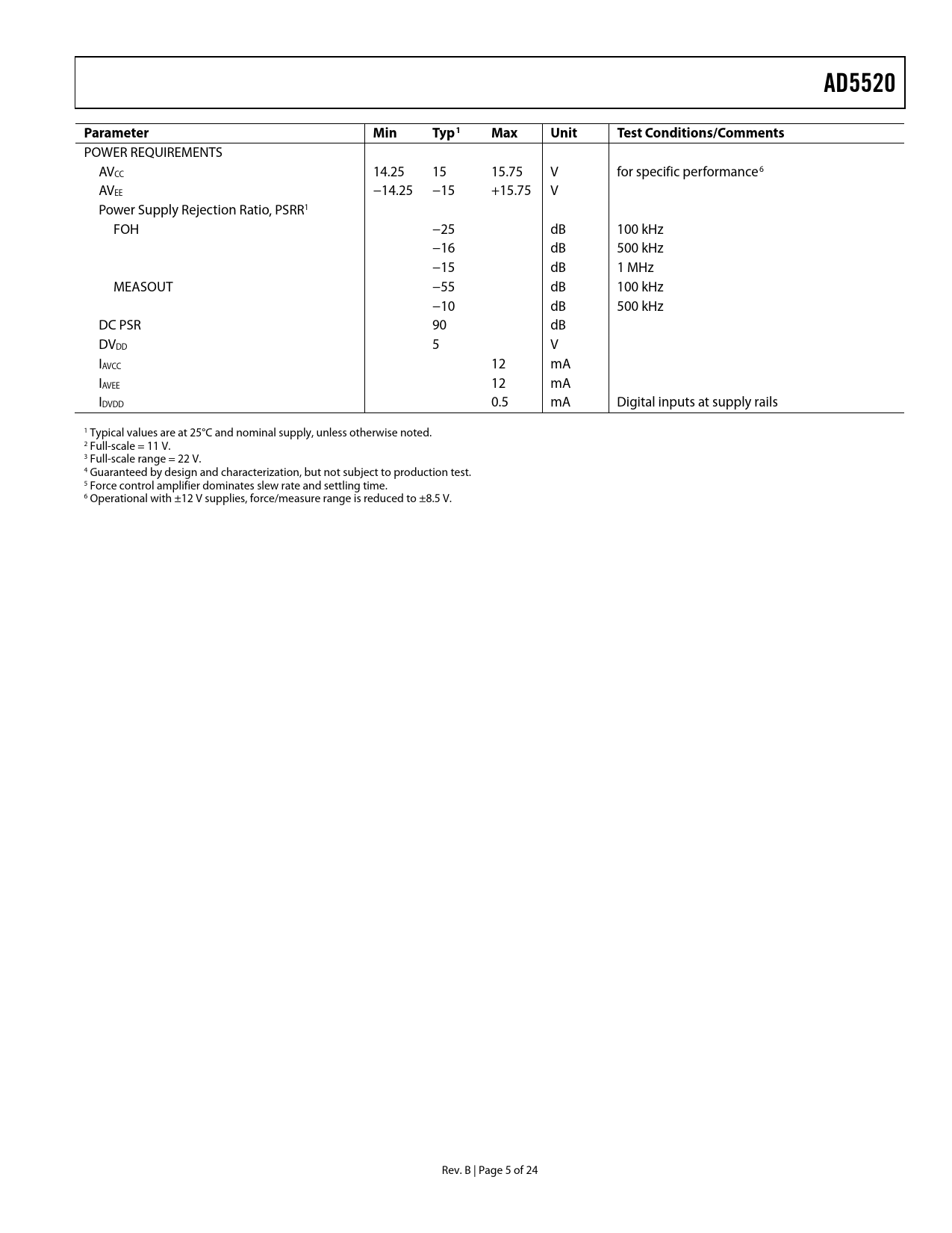 页数 / 页24 / 5 — AD5520. Parameter Min. Typ1. Max Unit Test. Conditions/Comments