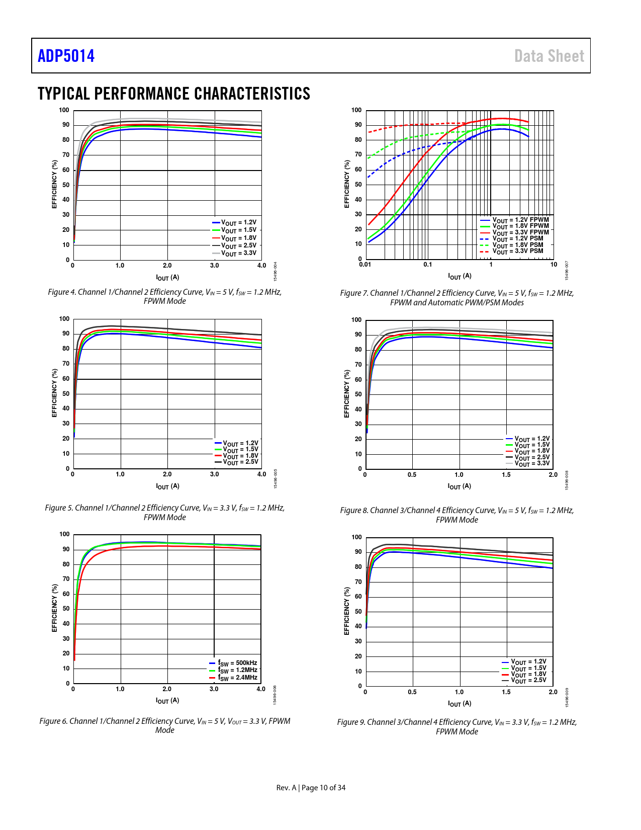 | 页数 / 页 | 34 / 10 — ADP5014. Data Sheet. TYPICAL PERFORMANCE CHARACTERISTICS. 100. FFIC. VOUT … |