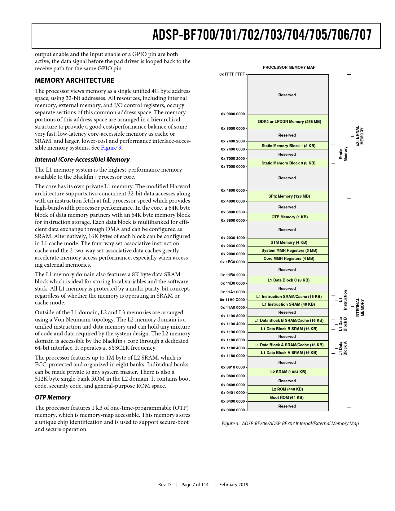ADSP-BF700/701/702/703/704/705/706/707 PROCESSOR MEMORY MAP 0x FFFF FFFF - MEMORY ARCHITECTURE Reserved 0x 9000 0000 -
