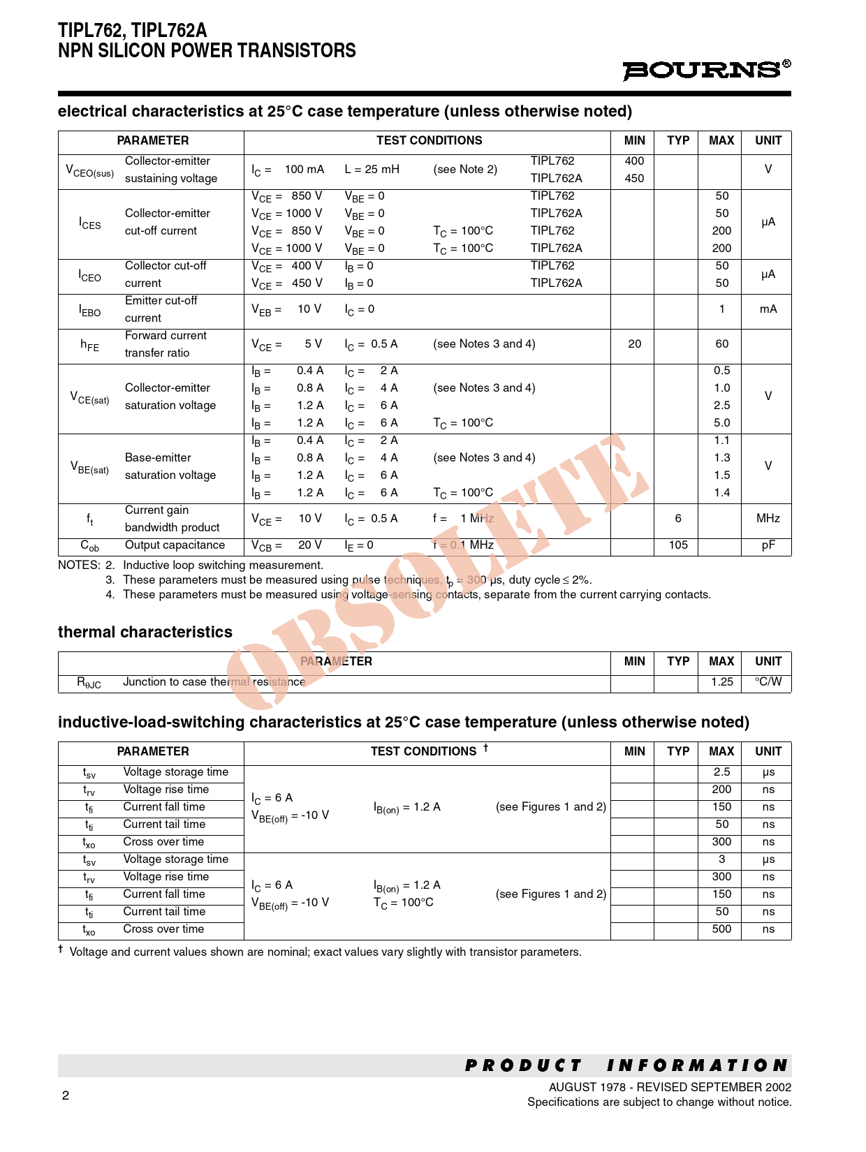 Datasheet TIPL762, TIPL762A (Bourns) - 2