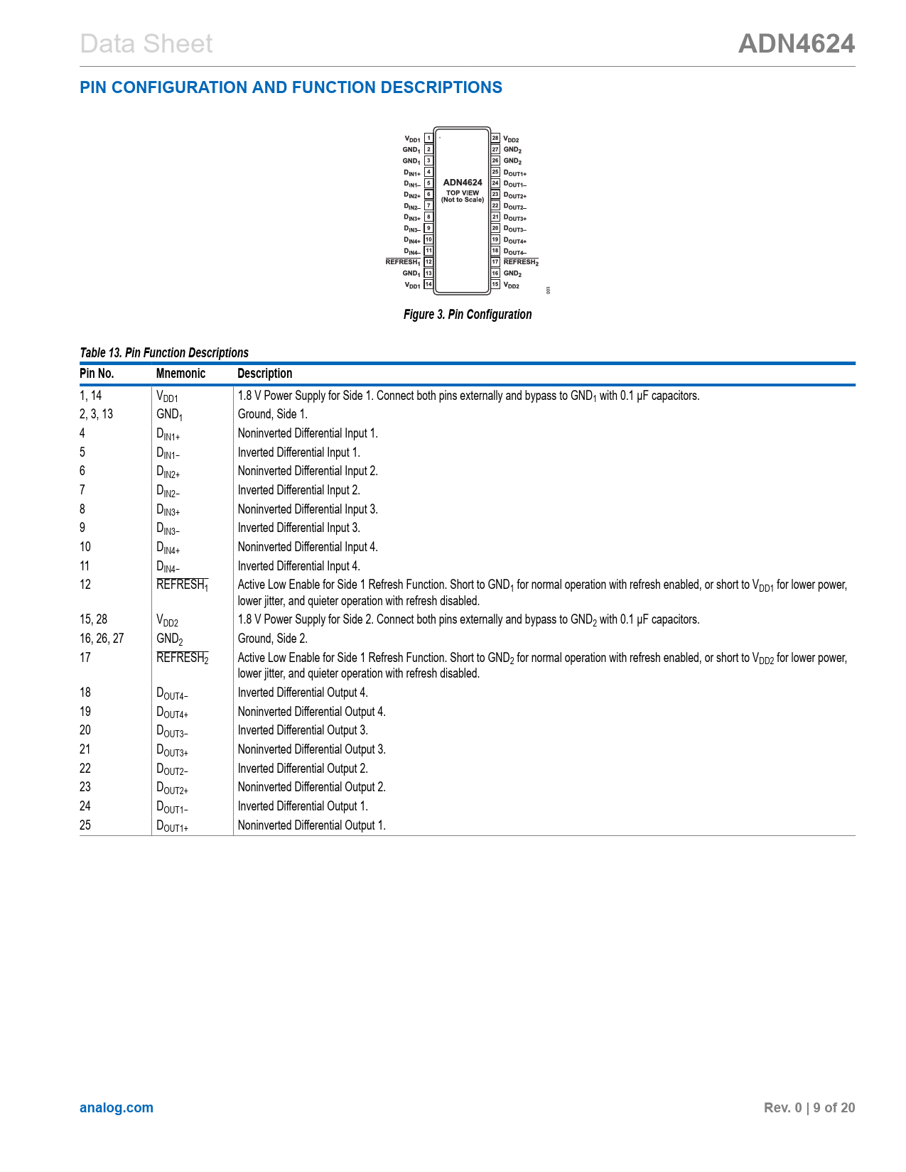 页数 / 页20 / 9 — ADN4624. PIN CONFIGURATION AND FUNCTION DESCRIPTIONS. Figure 3. Pin …