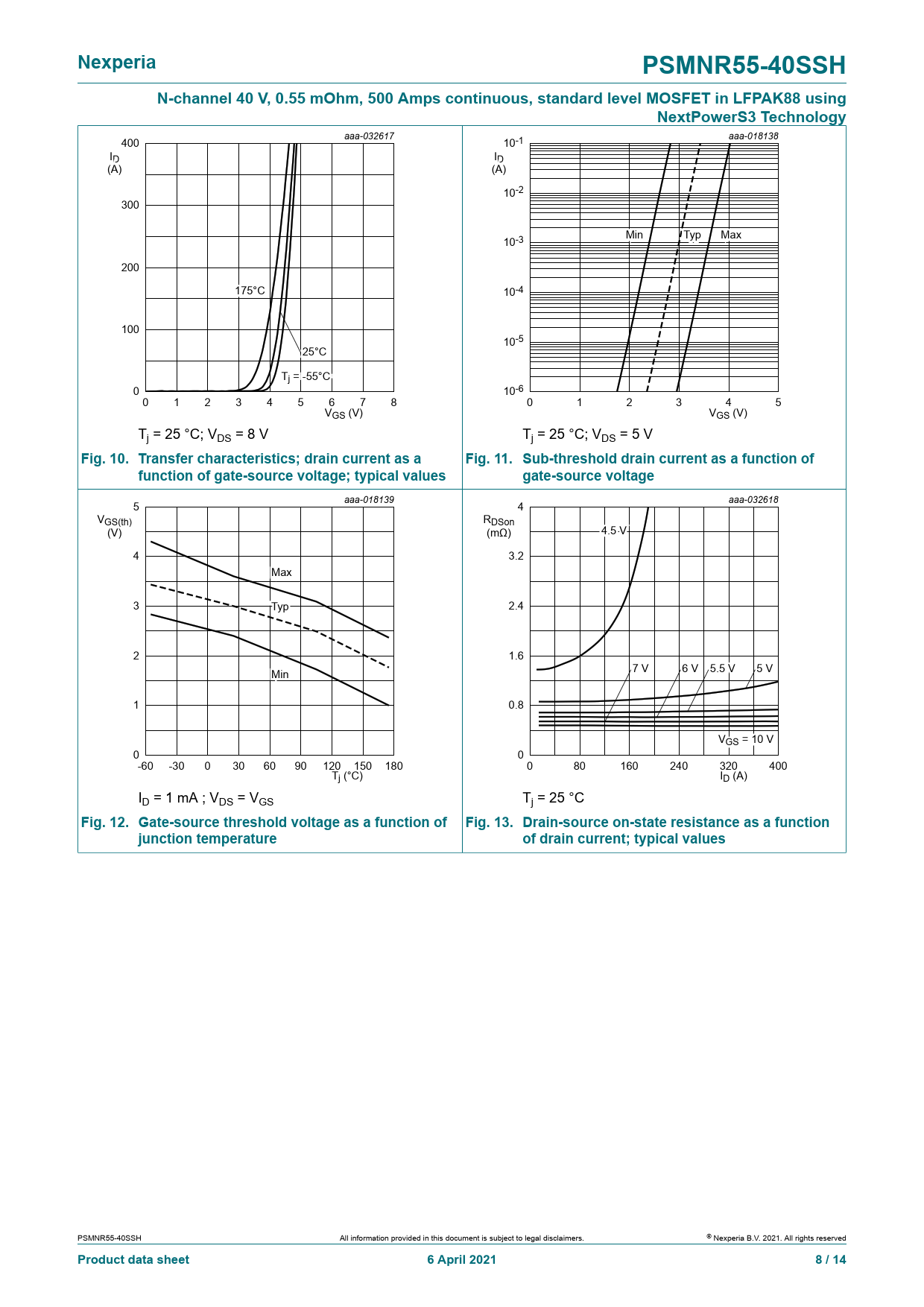 | 页数 / 页 | 14 / 8 — Nexperia. PSMNR55-40SSH. N-channel 40 V, 0.55 mOhm, 500 Amps continuous, … |
