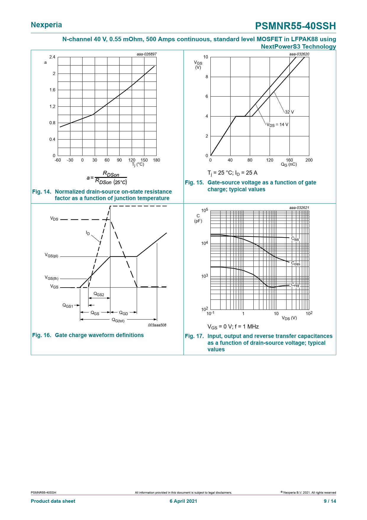 | 页数 / 页 | 14 / 9 — Nexperia. PSMNR55-40SSH. N-channel 40 V, 0.55 mOhm, 500 Amps continuous, … |
