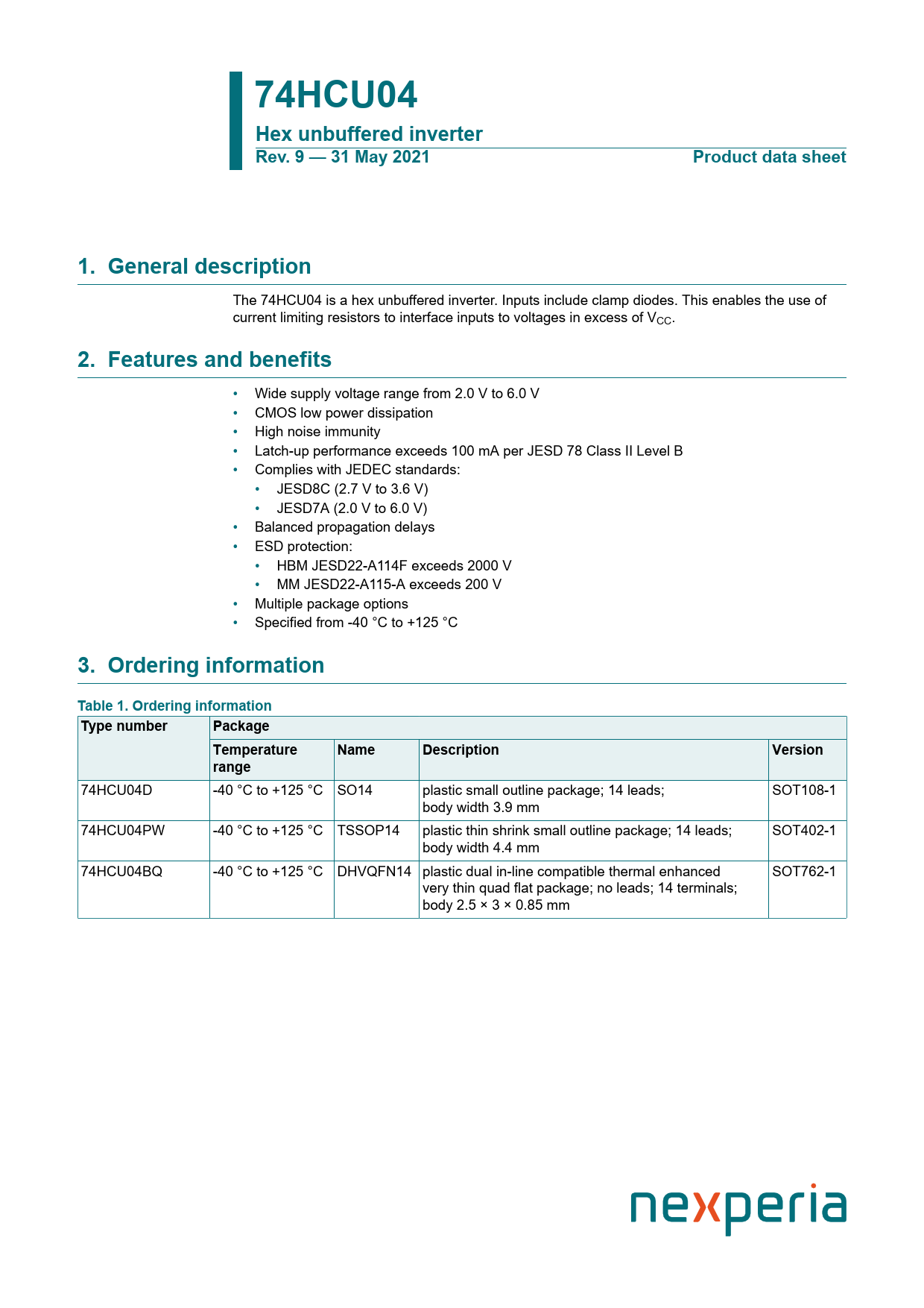 Datasheet 74HCU04 Nexperia, 修订版: 31052021