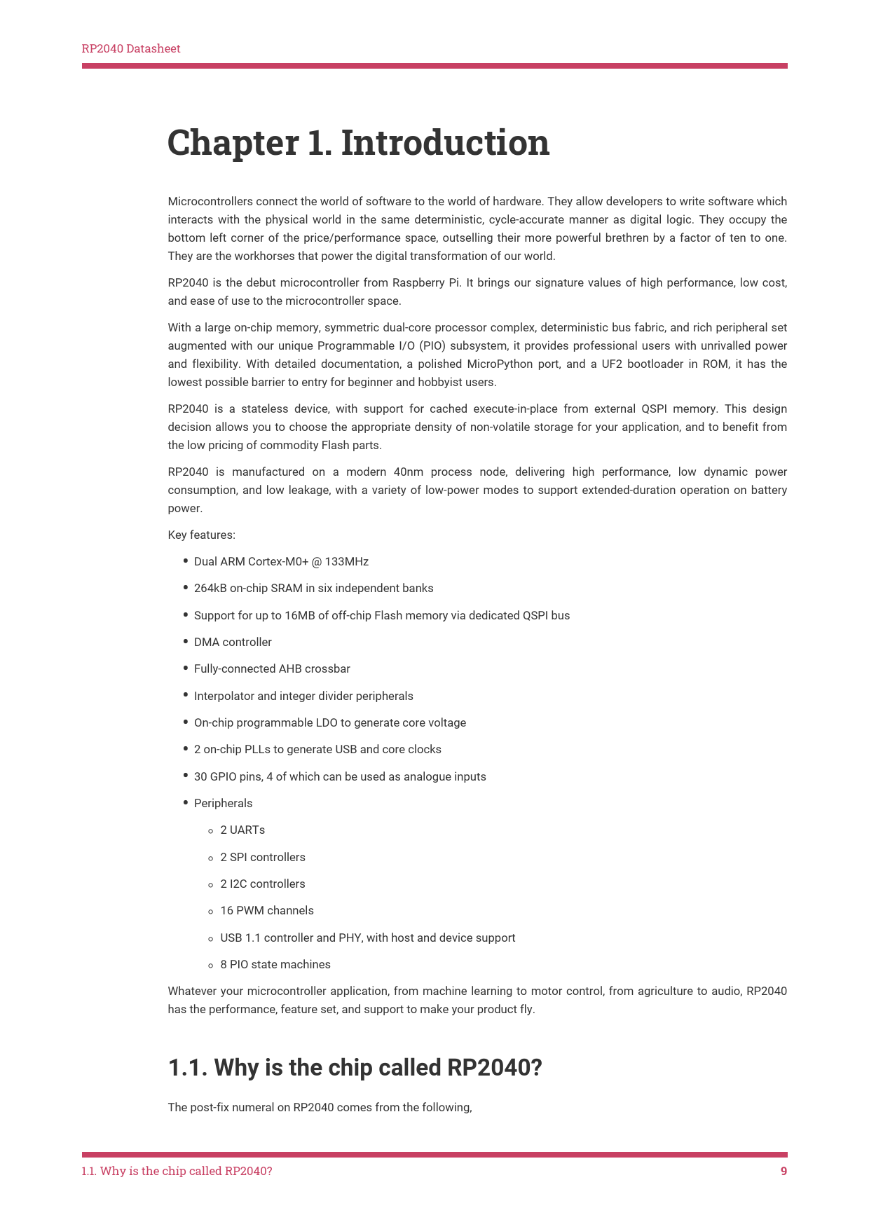 页数 / 页647 / 10 — Chapter 1. Introduction. 1.1. Why is the chip called RP2040?