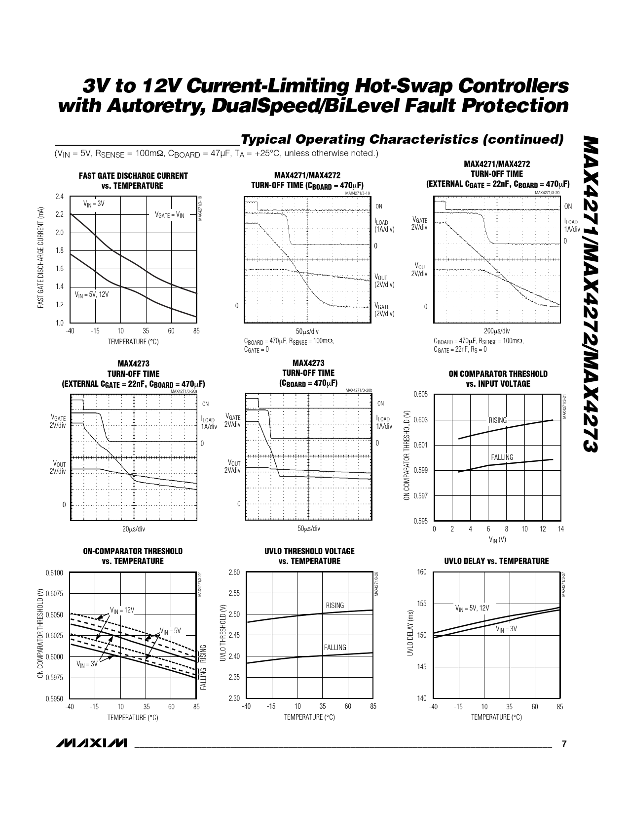3V to 12V Current-Limiting Hot-Swap Controllers with Autoretry, DualSpeed/BiLevel Fault Protection MAX4271/MAX4272/MAX4273 Typical Operating Characteristics (continued)