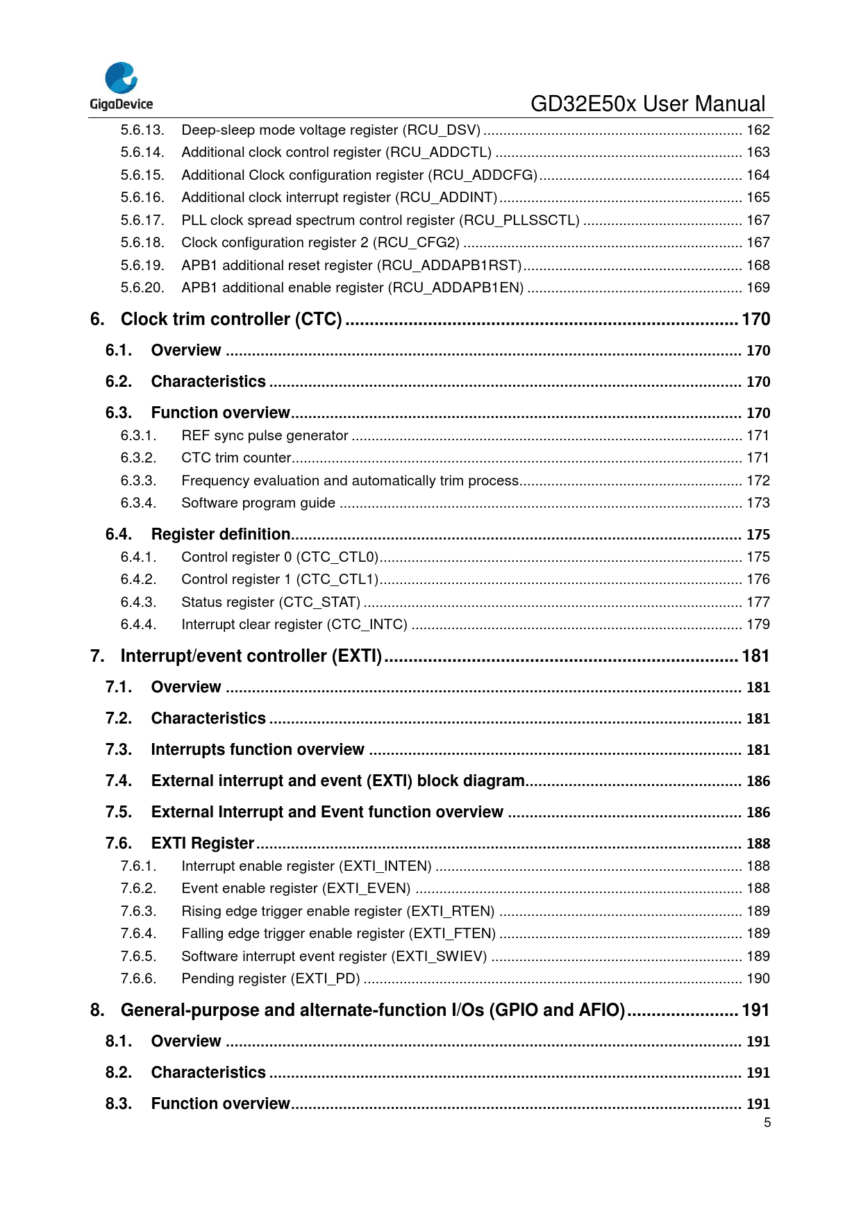 Clock trim controller (CTC) ... 170. 6.1. Overview ... 170. 6.2. Characteristics ... 170. 6.3. Function overview.. 170. 6.4