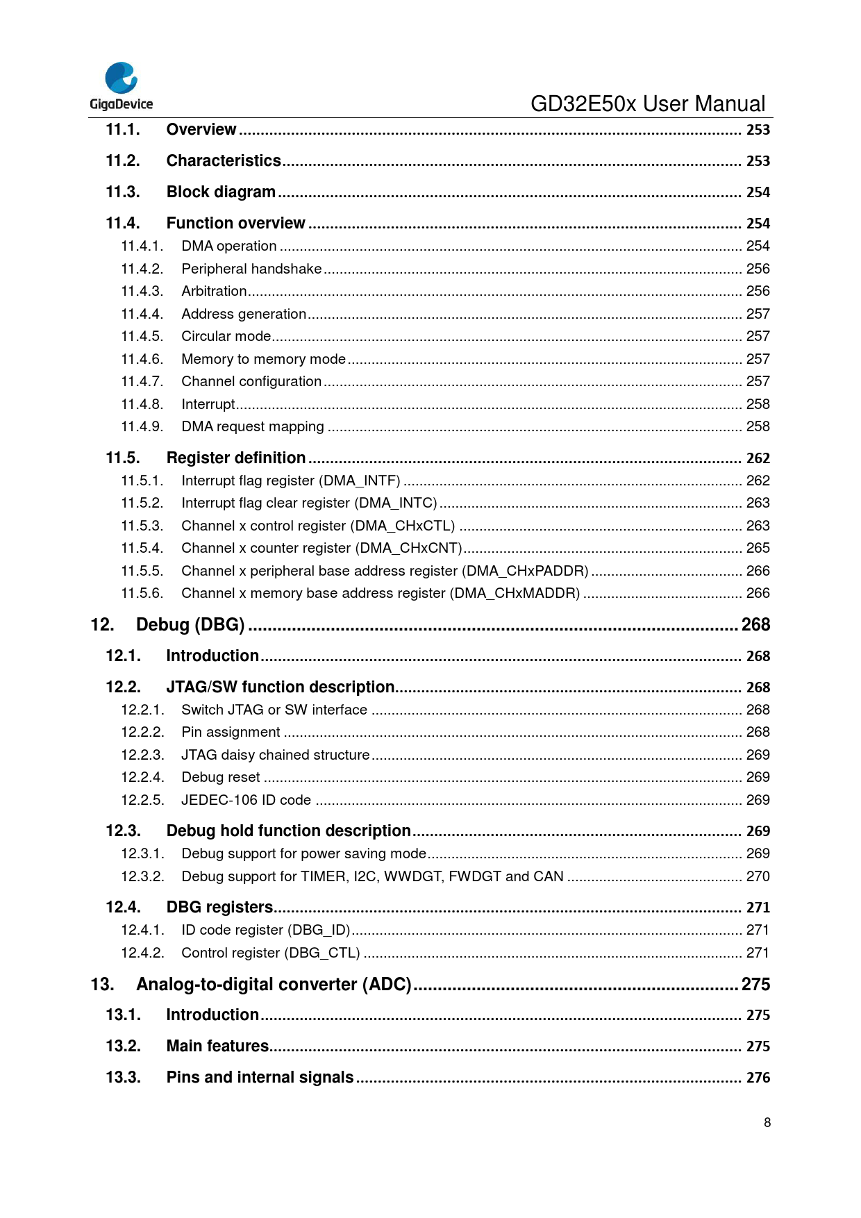 | 页数 / 页 | 1258 / 8 — 11.1. Overview .. 253. 11.2. Characteristics .. 253. 11.3. Block diagram … |
