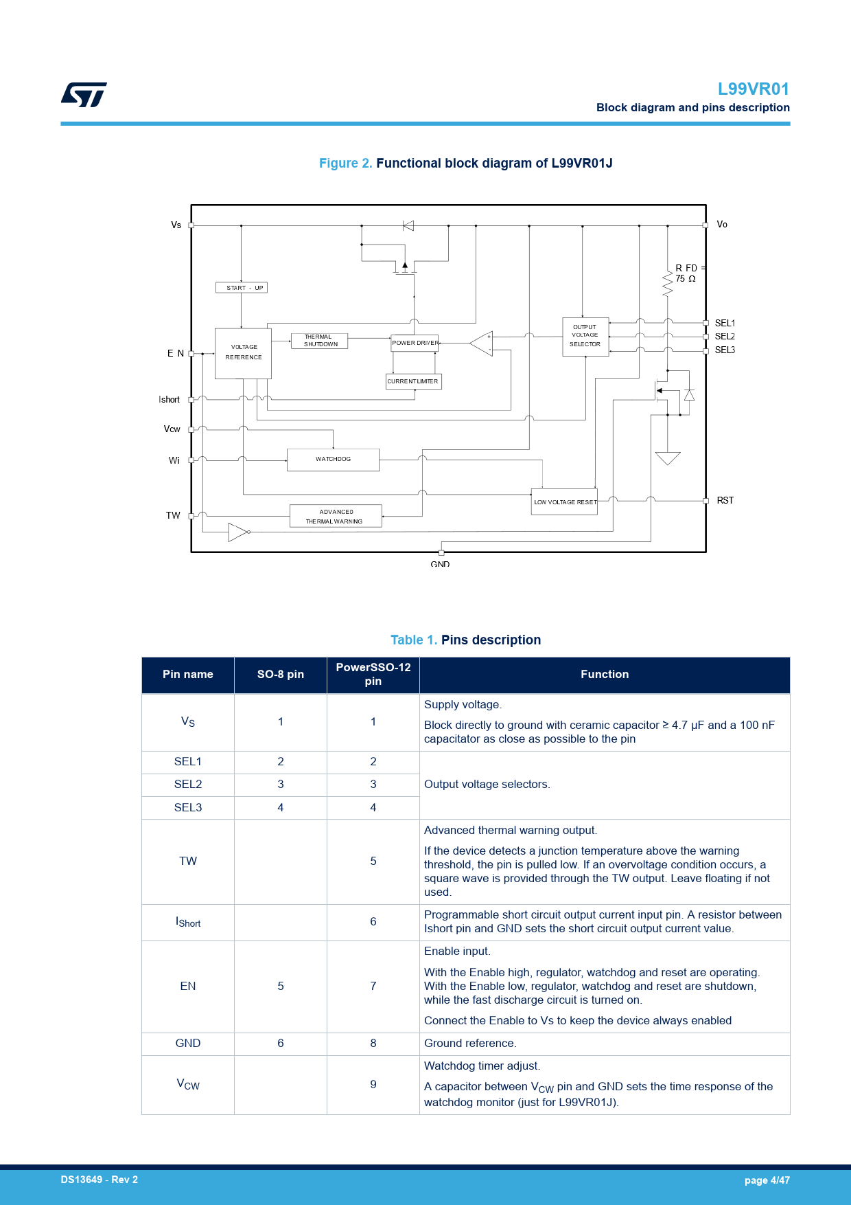 页数 / 页47 / 4 — L99VR01. Block diagram and pins description. Figure 2. Functional block …