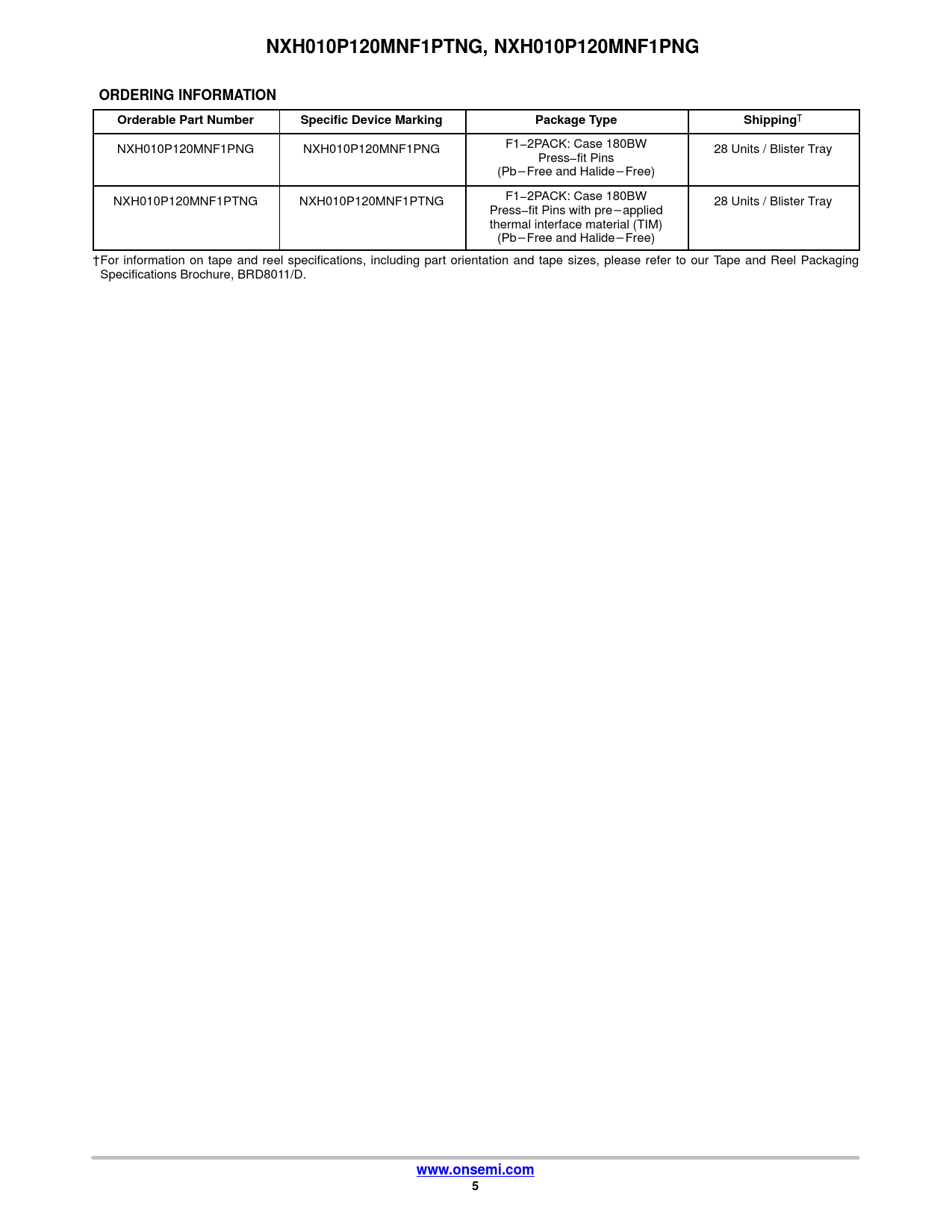 页数 / 页12 / 5 — NXH010P120MNF1PTNG, NXH010P120MNF1PNG. ORDERING INFORMATION. Orderable …