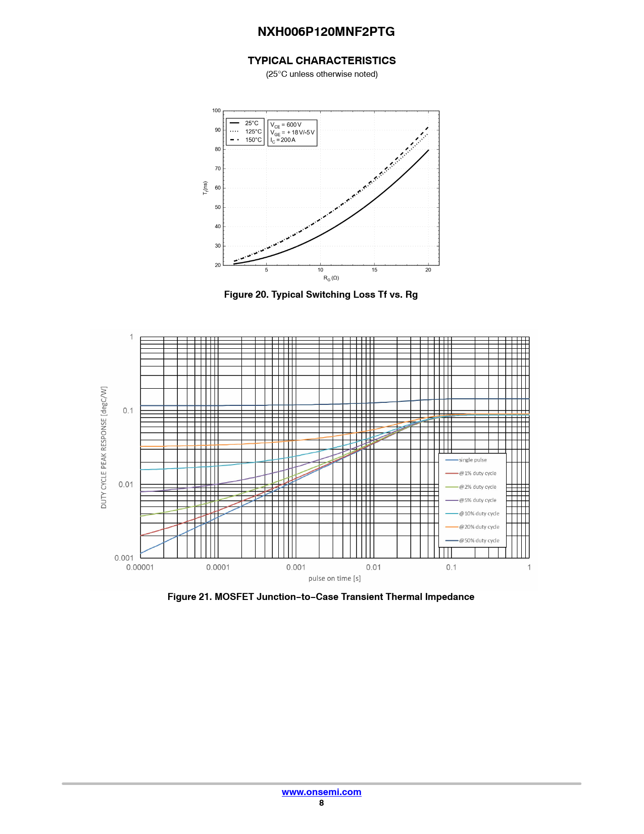 Figure 20. Typical Switching Loss Tf vs. Rg Figure 21. MOSFET Junction−to−Case Transient Thermal Impedance www.onsemi.com 8