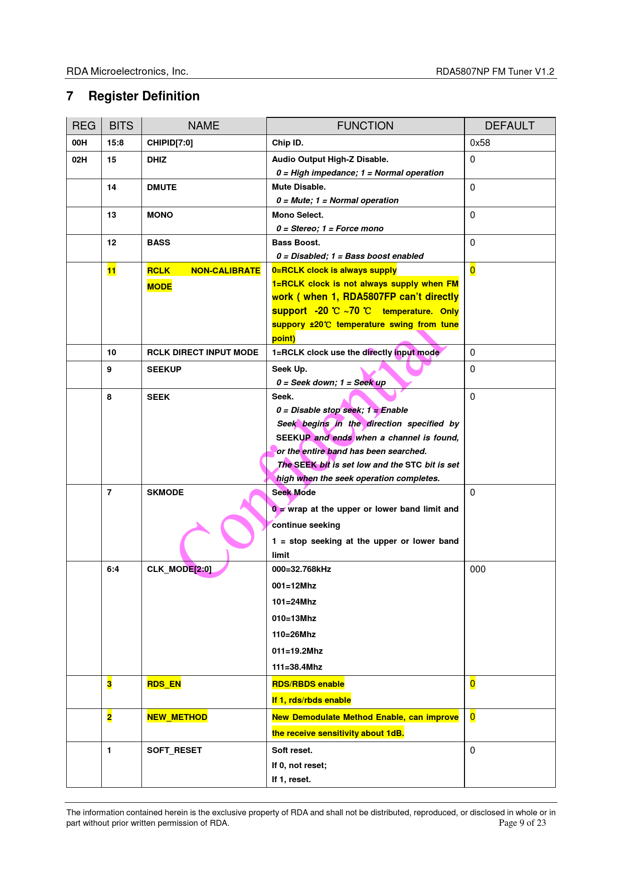 Datasheet RDA5807FP (RDA Microelectronics) - 9