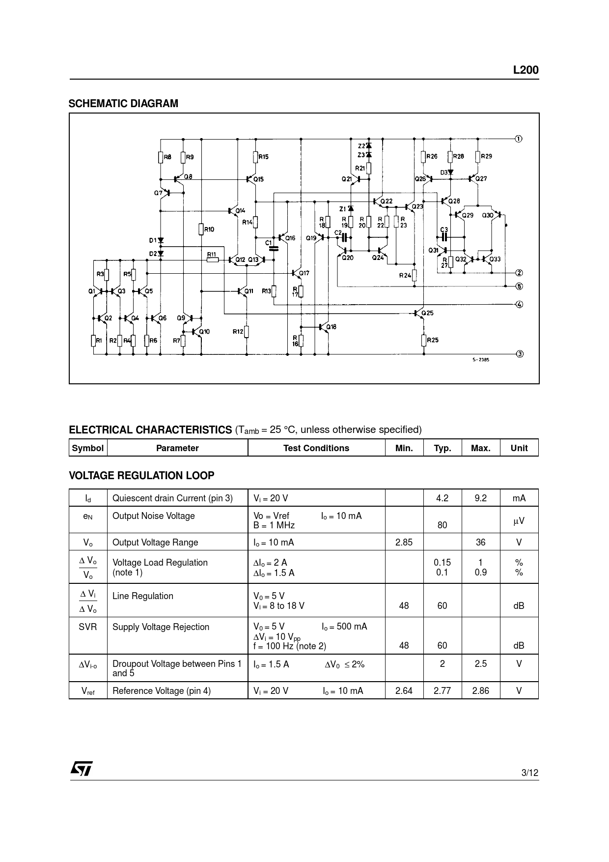 页数 / 页12 / 3 — L200. SCHEMATIC DIAGRAM. ELECTRICAL CHARACTERISTICS. Symbol. Parameter. …