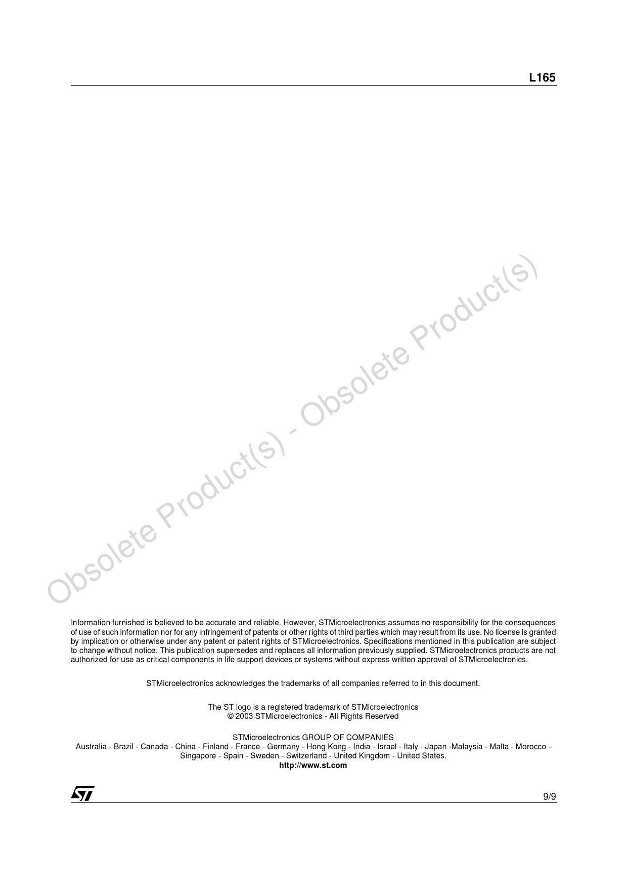 | 页数 / 页 | 9 / 9 — L165. http://www.st.com |