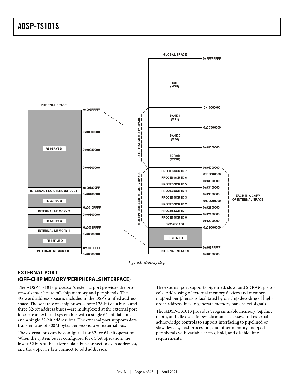 页数 / 页45 / 6 — ADSP-TS101S. GLOBAL SPACE. 0xFFFFFFFF. HOST. (MSH). INTERNAL SPACE. …