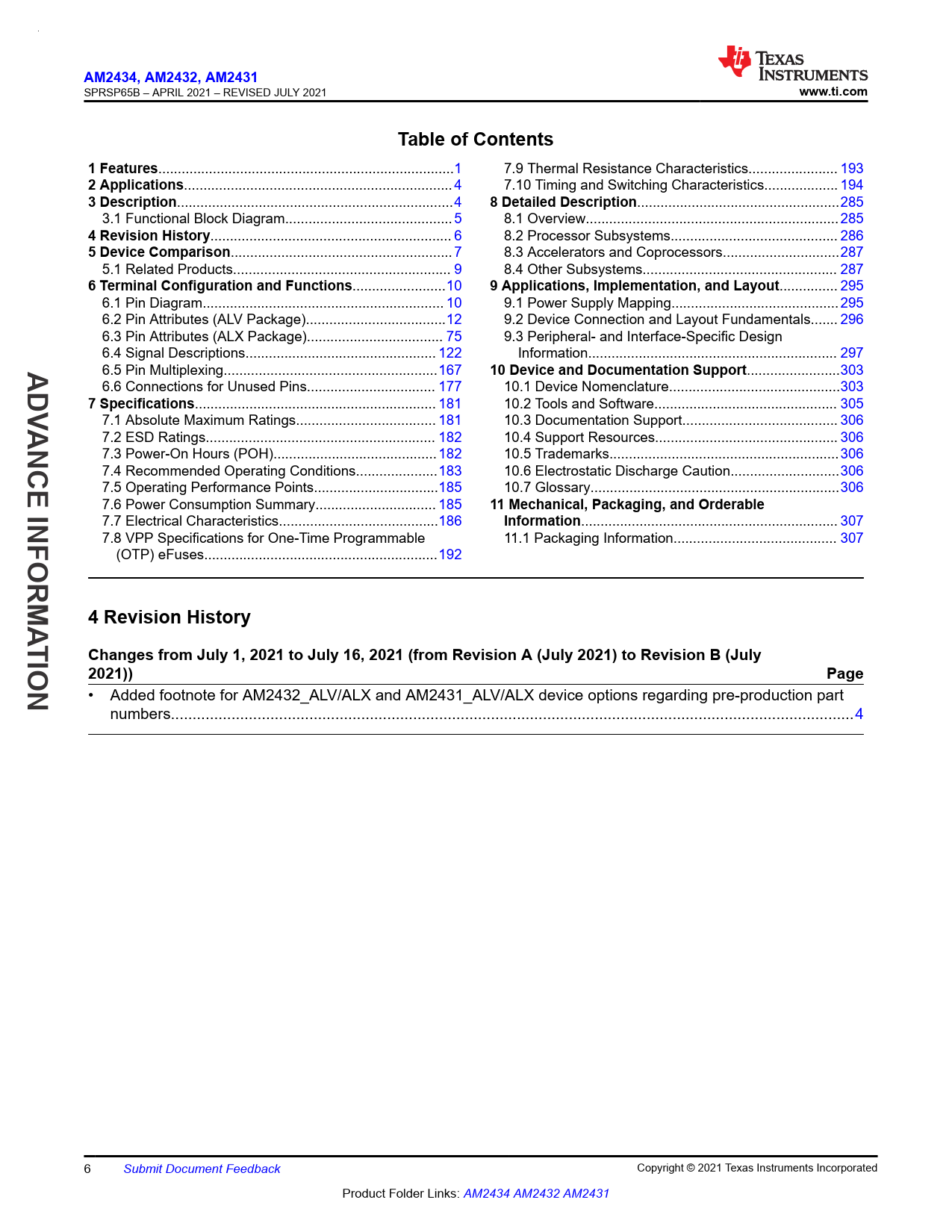 | 页数 / 页 | 316 / 6 — AM2434. , AM2432, AM2431. www.ti.com. Table of Contents. 1 Features. 2 … |