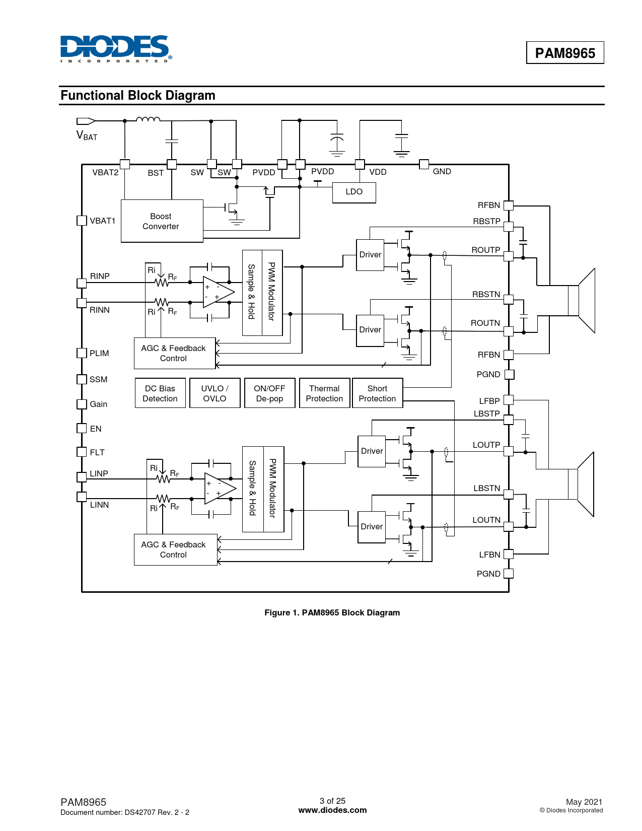 | 页数 / 页 | 25 / 3 — PAM8965. Functional Block Diagram. Figure 1. PAM8965 Block Diagram. … |