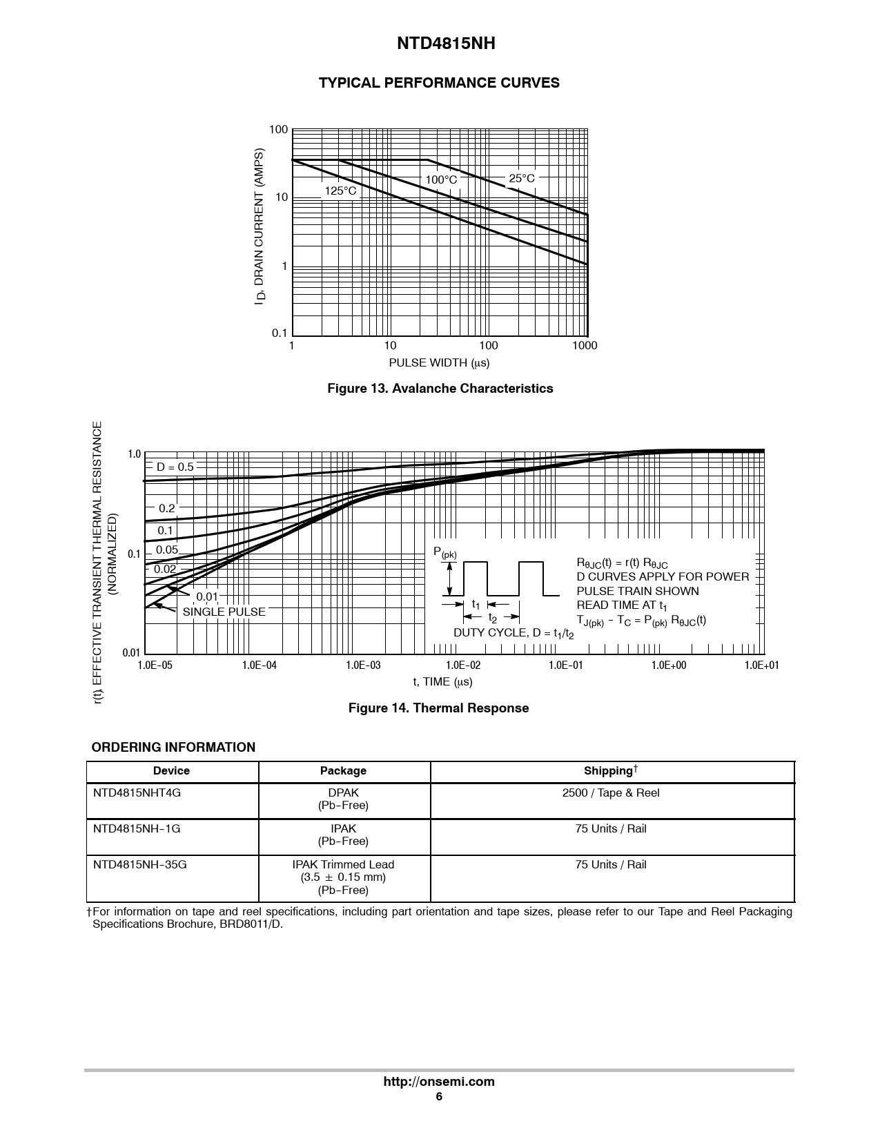 NTD4815NH. TYPICAL PERFORMANCE CURVES. Figure 13. Avalanche Characteristics. Figure 14. Thermal Response. ORDERING INFORMATION