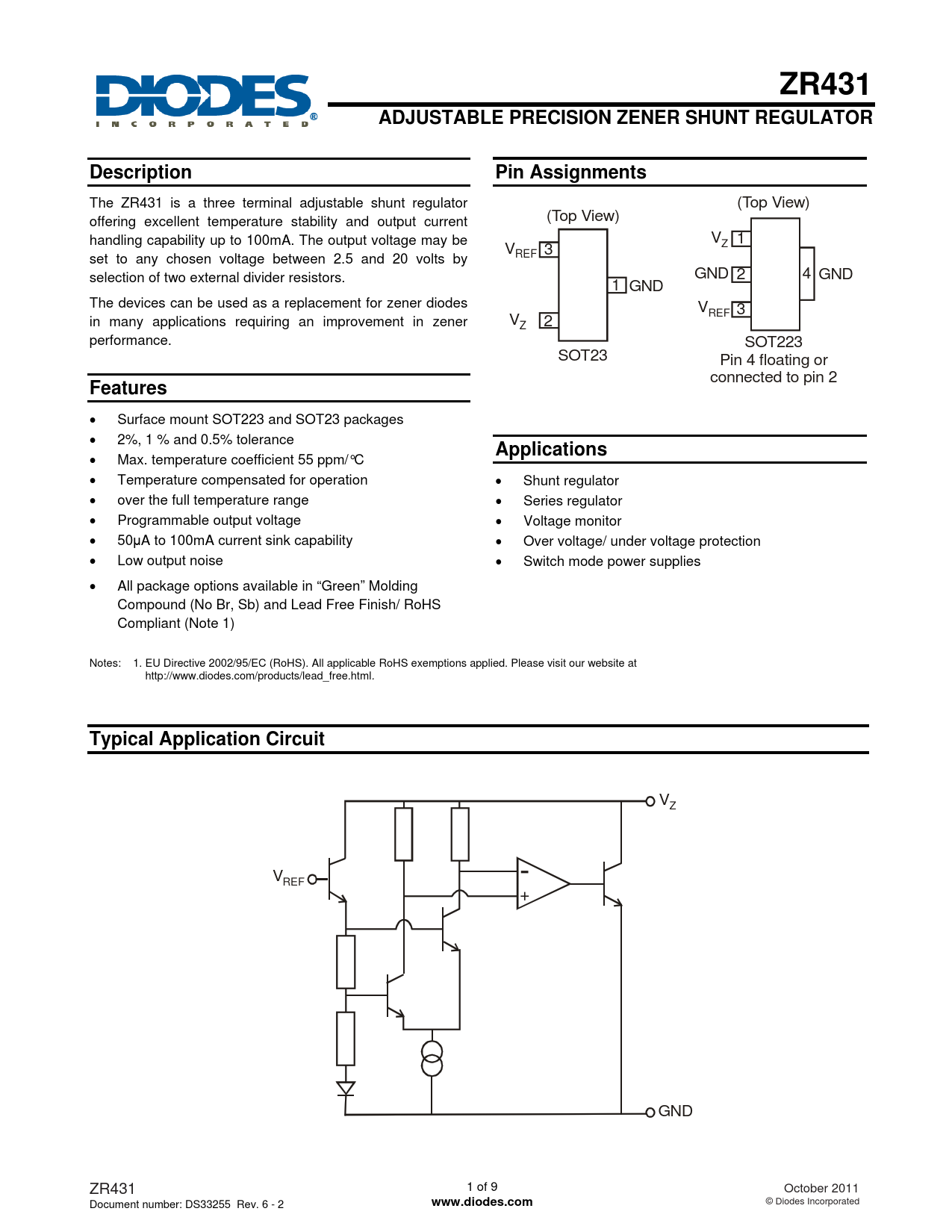 VZ V REF + GND ZR431 1 of 9 October 2011 Document number: DS33255 Rev. 6 - 2