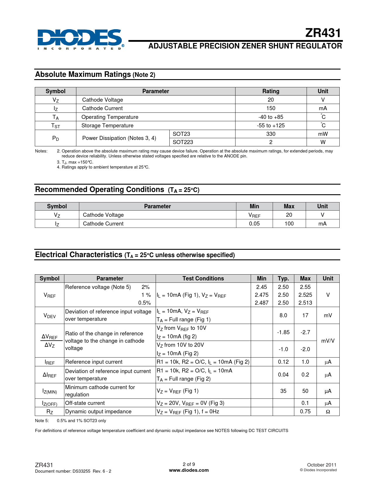 ZR431. ADJUSTABLE PRECISION ZENER SHUNT REGULATOR. Absolute Maximum Ratings (Note 2). Symbol. Parameter. Rating. Unit. ATI