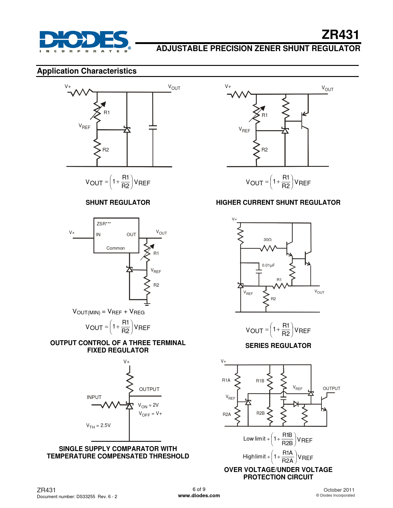 | 页数 / 页 | 9 / 6 — ZR431. ADJUSTABLE PRECISION ZENER SHUNT REGULATOR. Application … |