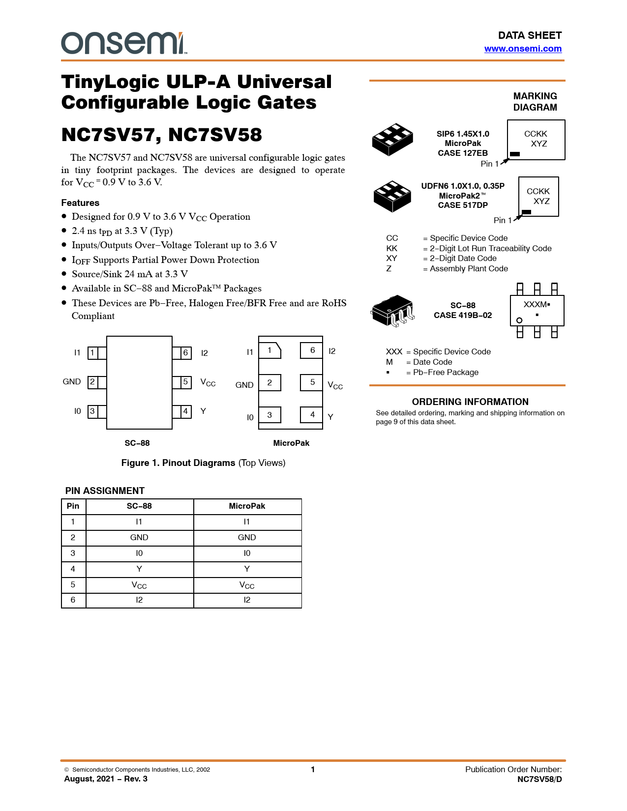 数据表Datasheet NC7SV57, NC7SV58 (ON …