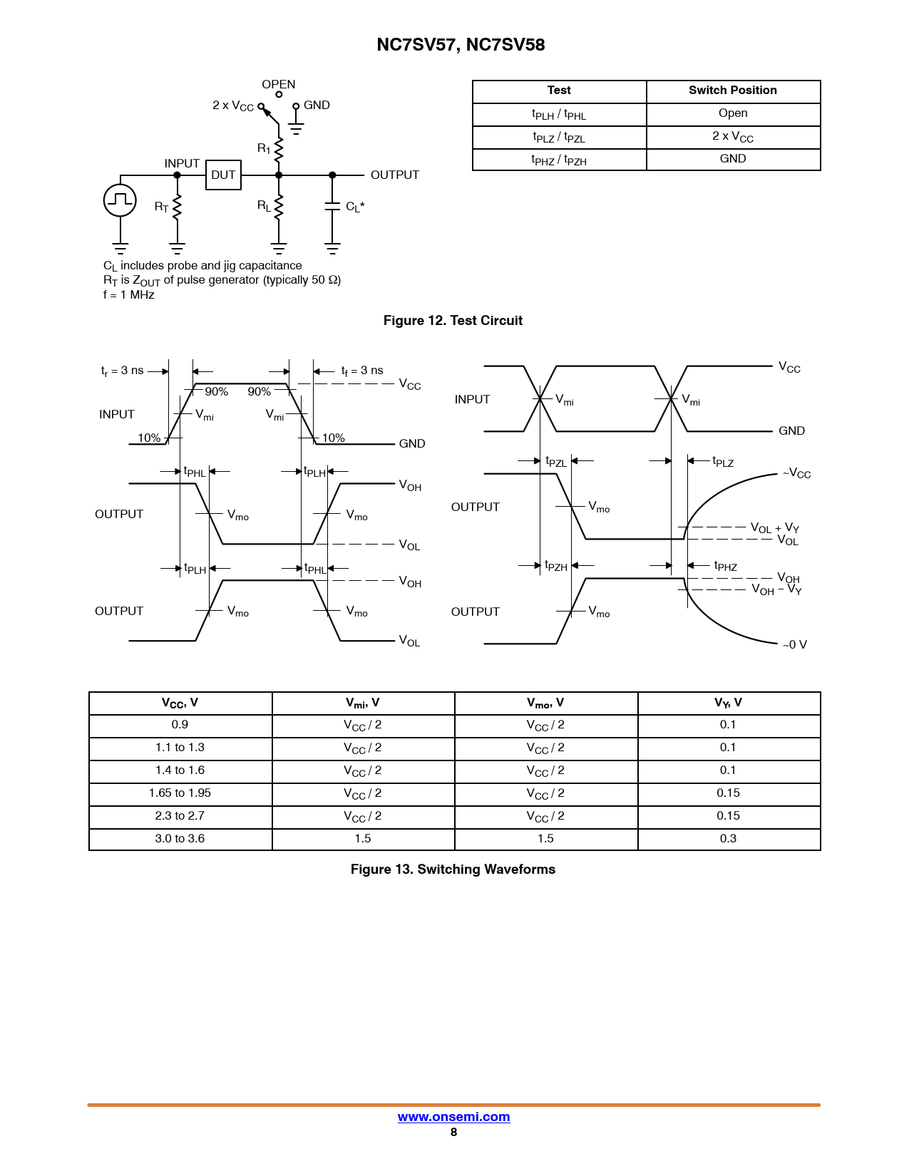 | 页数 / 页 | 13 / 8 — NC7SV57, NC7SV58. Test. Switch Position. Figure 12. Test Circuit. VCC, V. … |