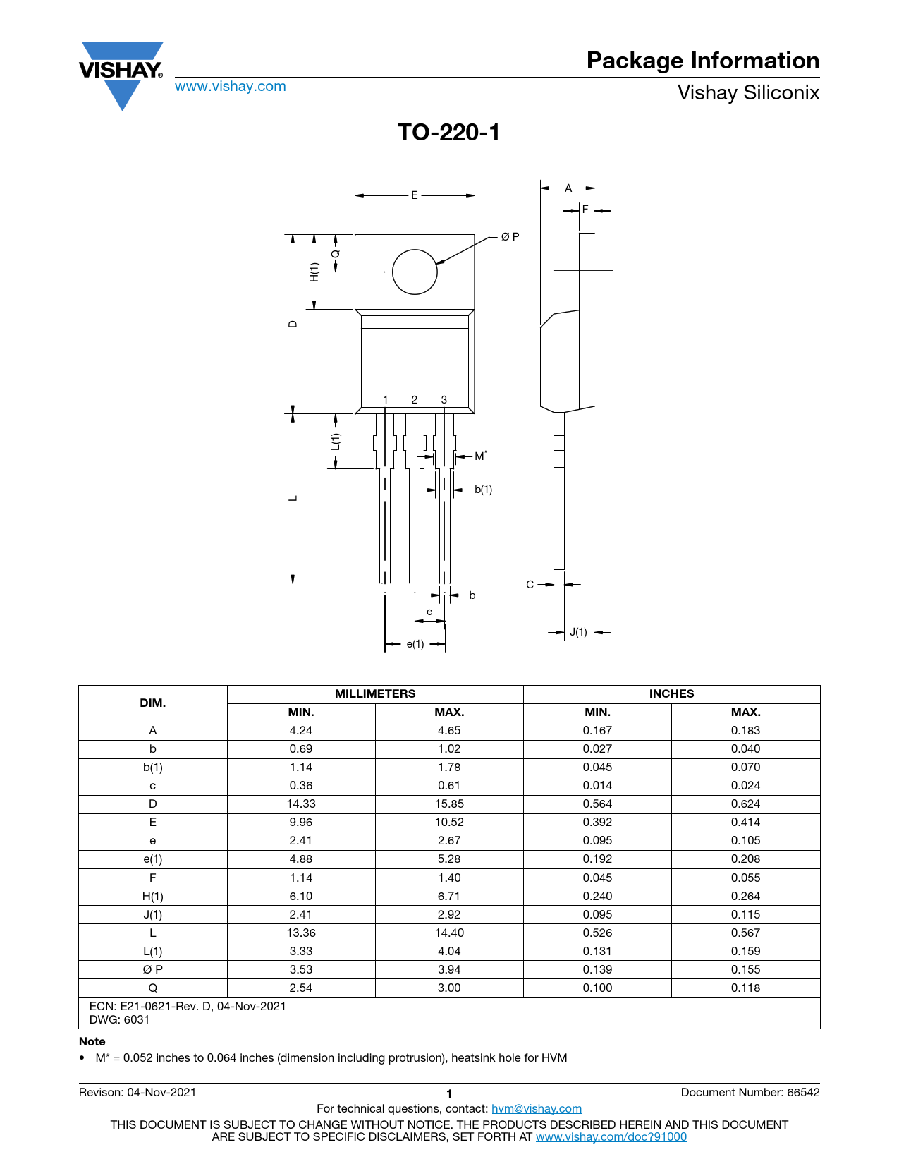 Package Information. TO-220-1. MILLIMETERS. INCHES. DIM. MIN. MAX. Note
