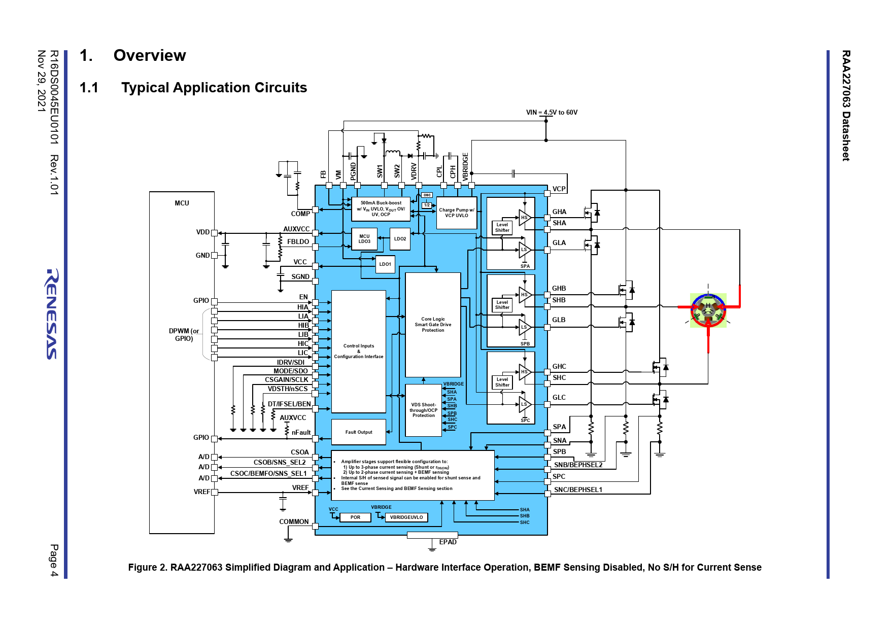 RAA2. 1. Overview. 270. 1.1. Typical Application Circuits. Dat. VIN = 4.5V to 60V. shee. VCP. osc. 500mA Buck-boost. MCU. 1/2