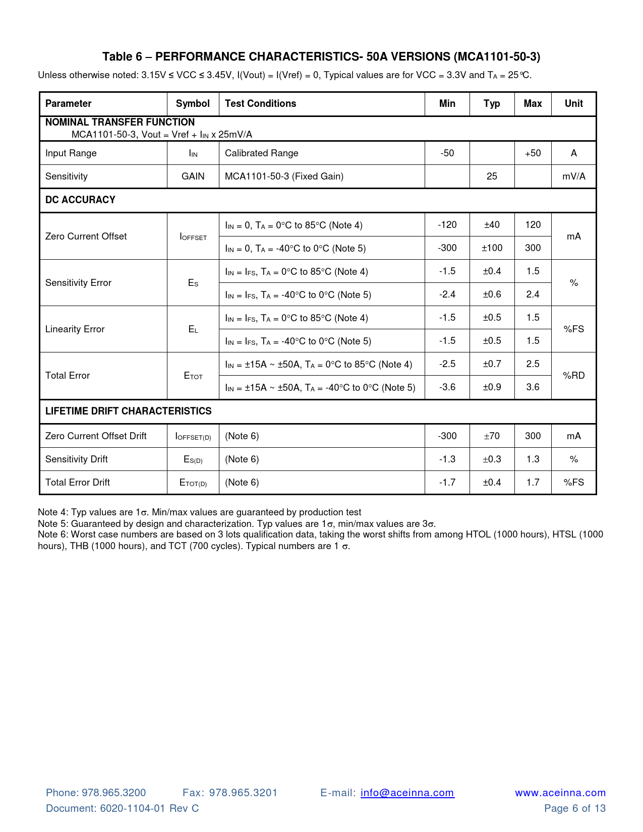 Datasheet MCA1101-5-3, MCA1101-20-3, MCA1101-50-3 (Aceinna) - 6