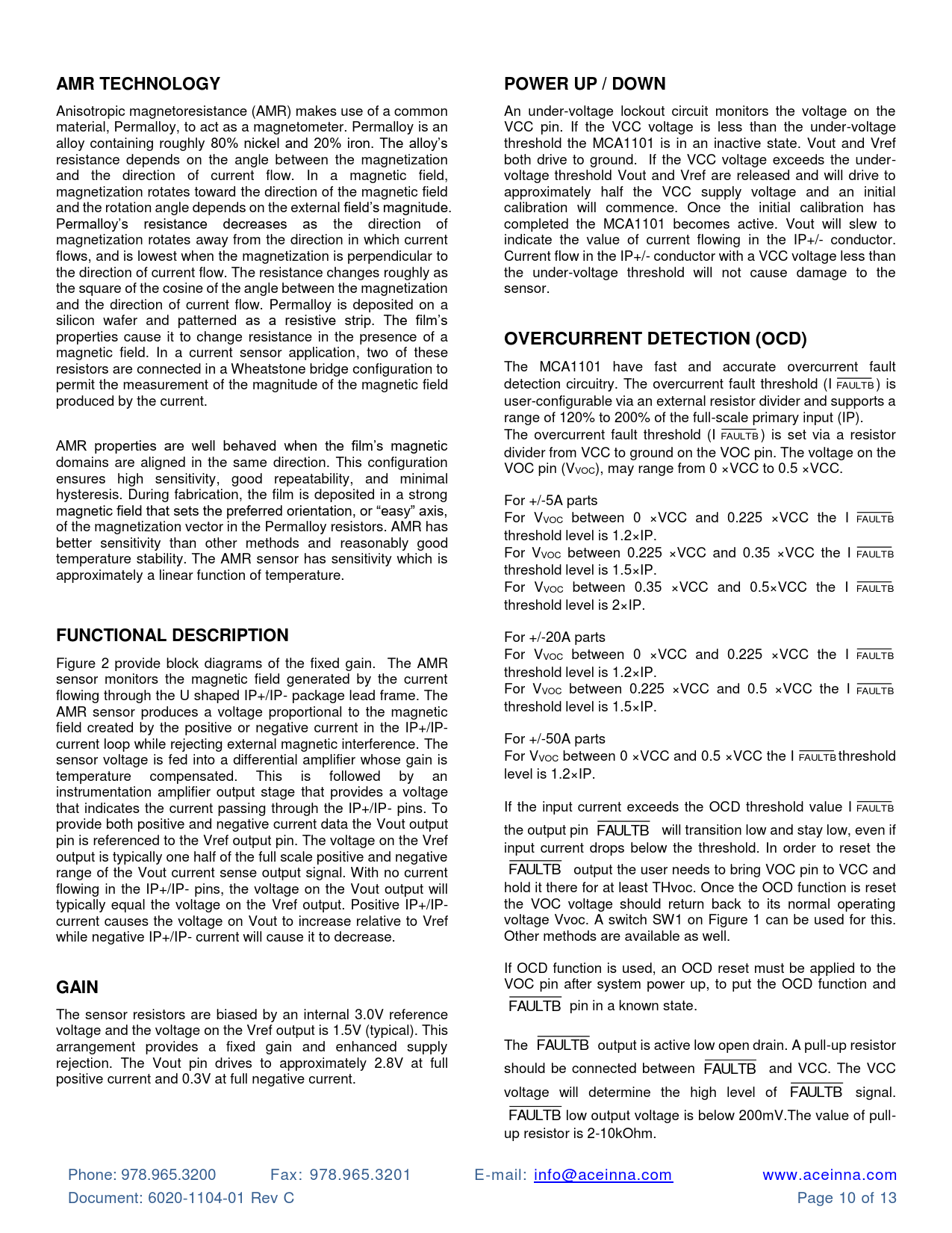 AMR TECHNOLOGY. POWER UP / DOWN. OVERCURRENT DETECTION (OCD). FUNCTIONAL DESCRIPTION. GAIN