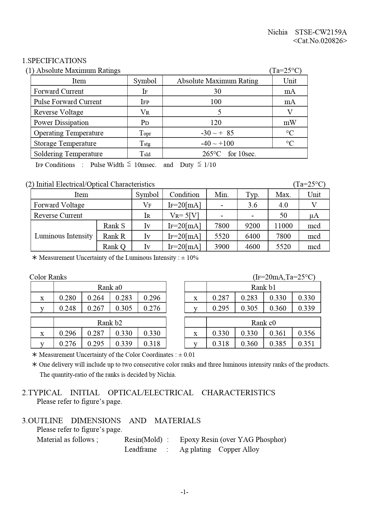 Nichia STSE-CW2159A 1.SPECIFICATIONS
