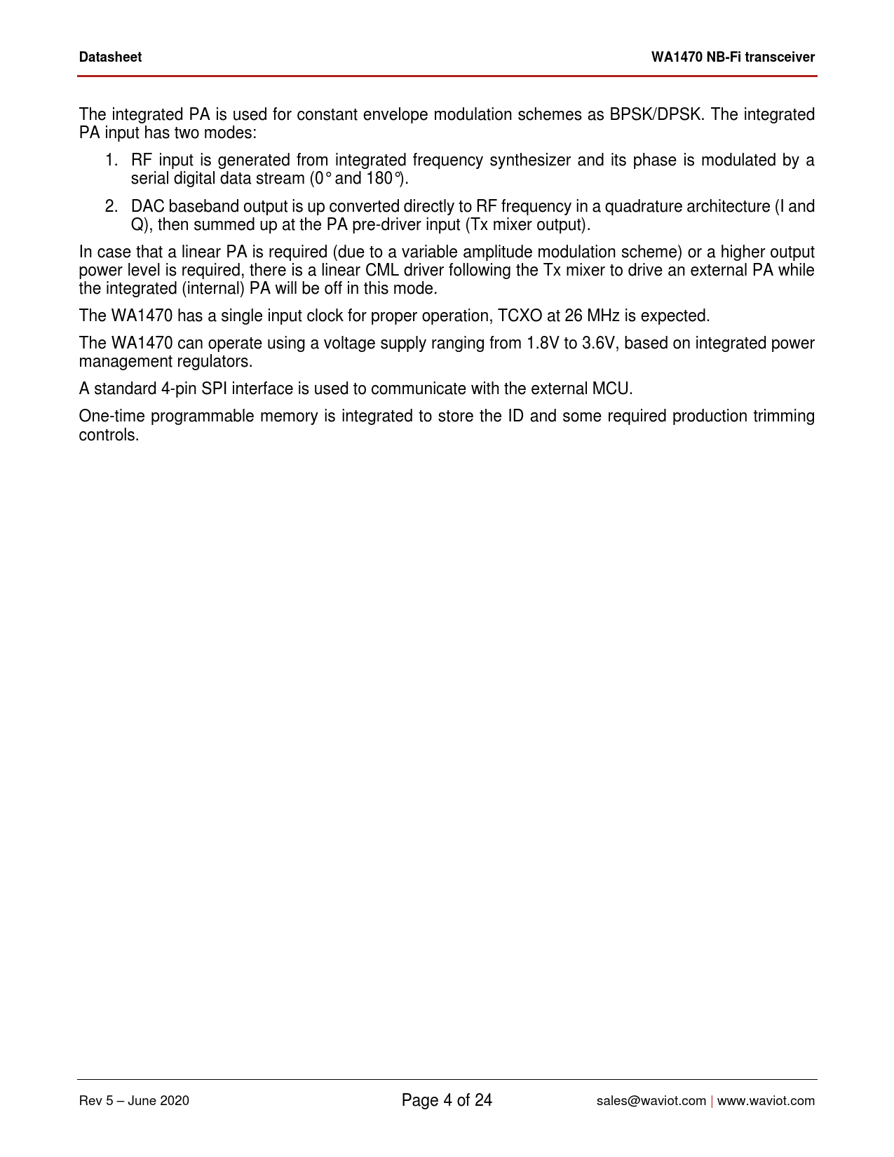页数 / 页24 / 4 — Datasheet. WA1470 NB-Fi transceiver