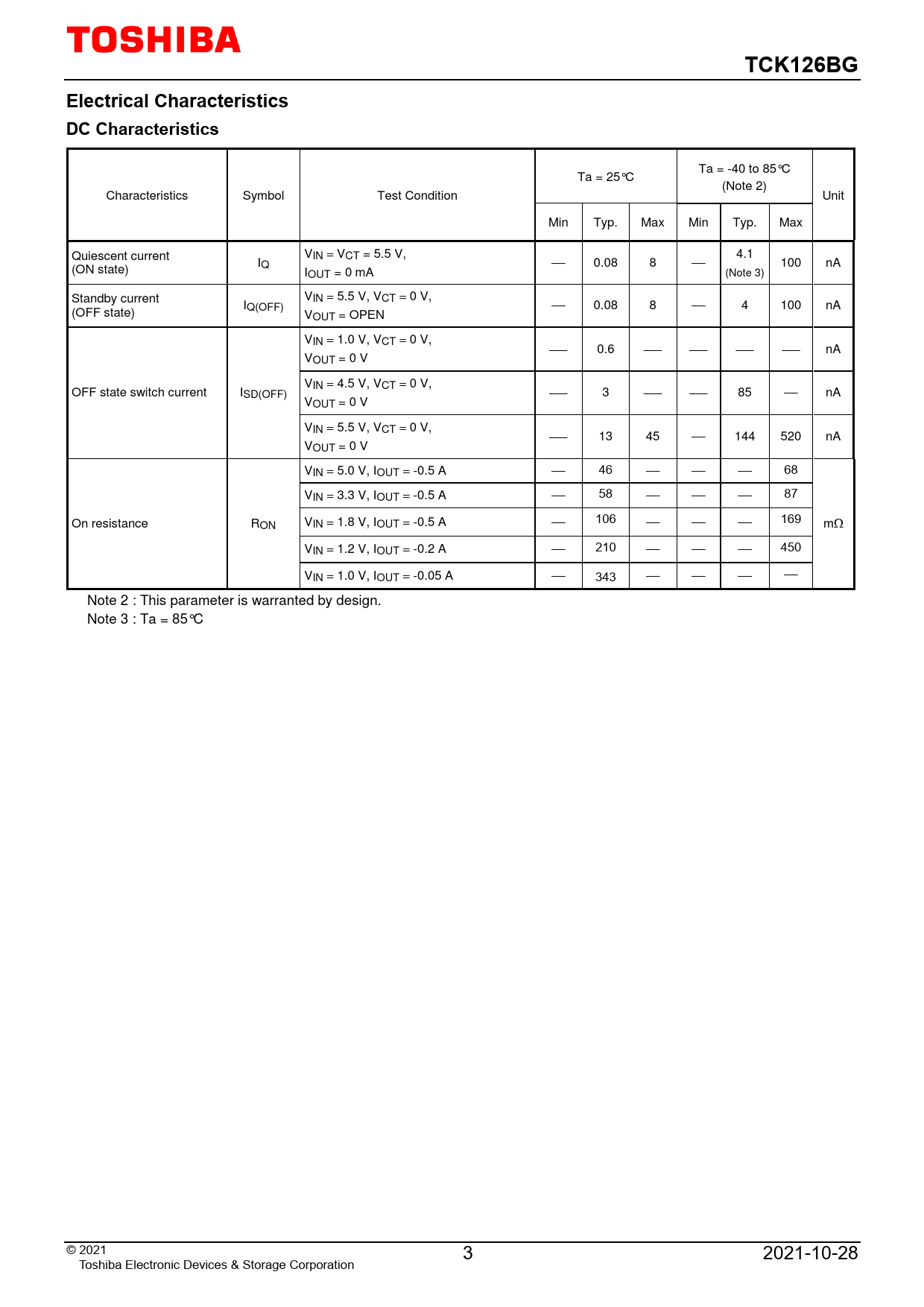 | 页数 / 页 | 13 / 3 — TCK126BG. Electrical Characteristics DC Characteristics |