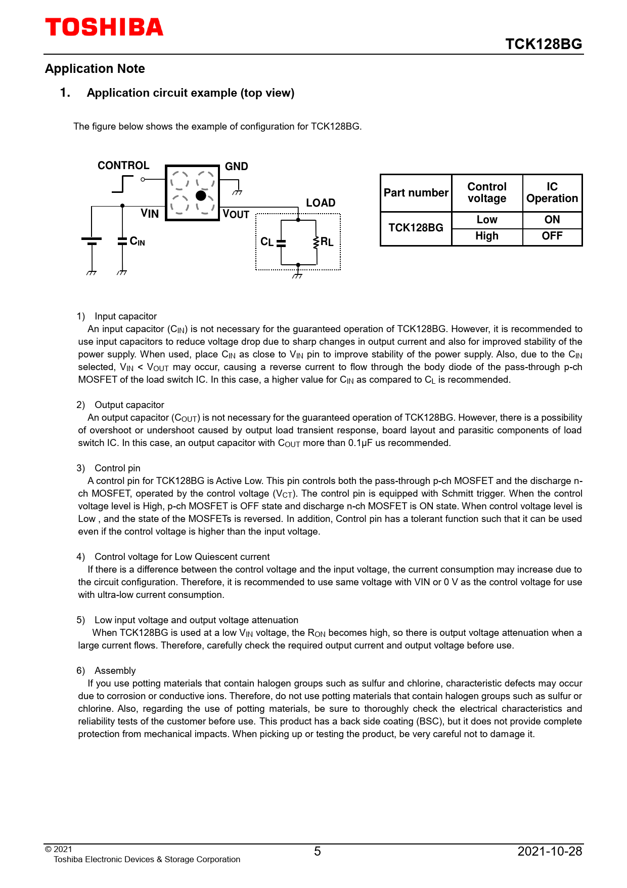 | 页数 / 页 | 13 / 5 — TCK128BG. Application Note. 1. Application circuit example (top view). … |