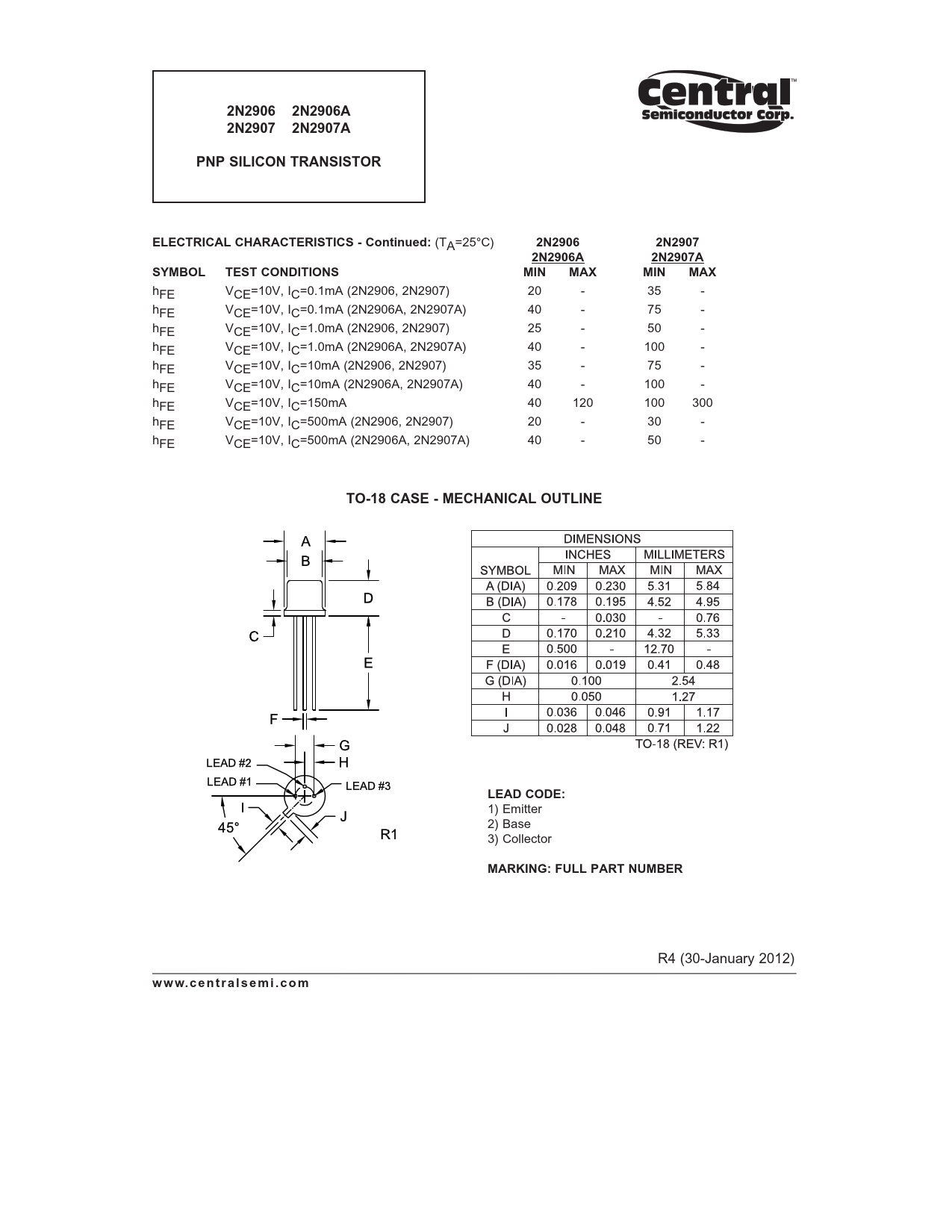 Datasheet 2N2906, 2N2907, 2N2906A, 2N2907A (Central Semiconductor) - 2