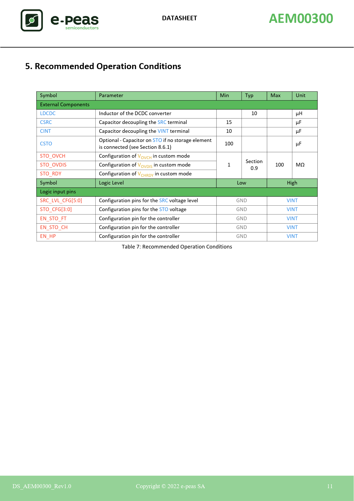 DATASHEET. AEM00300. 5. Recommended Operation Conditions
