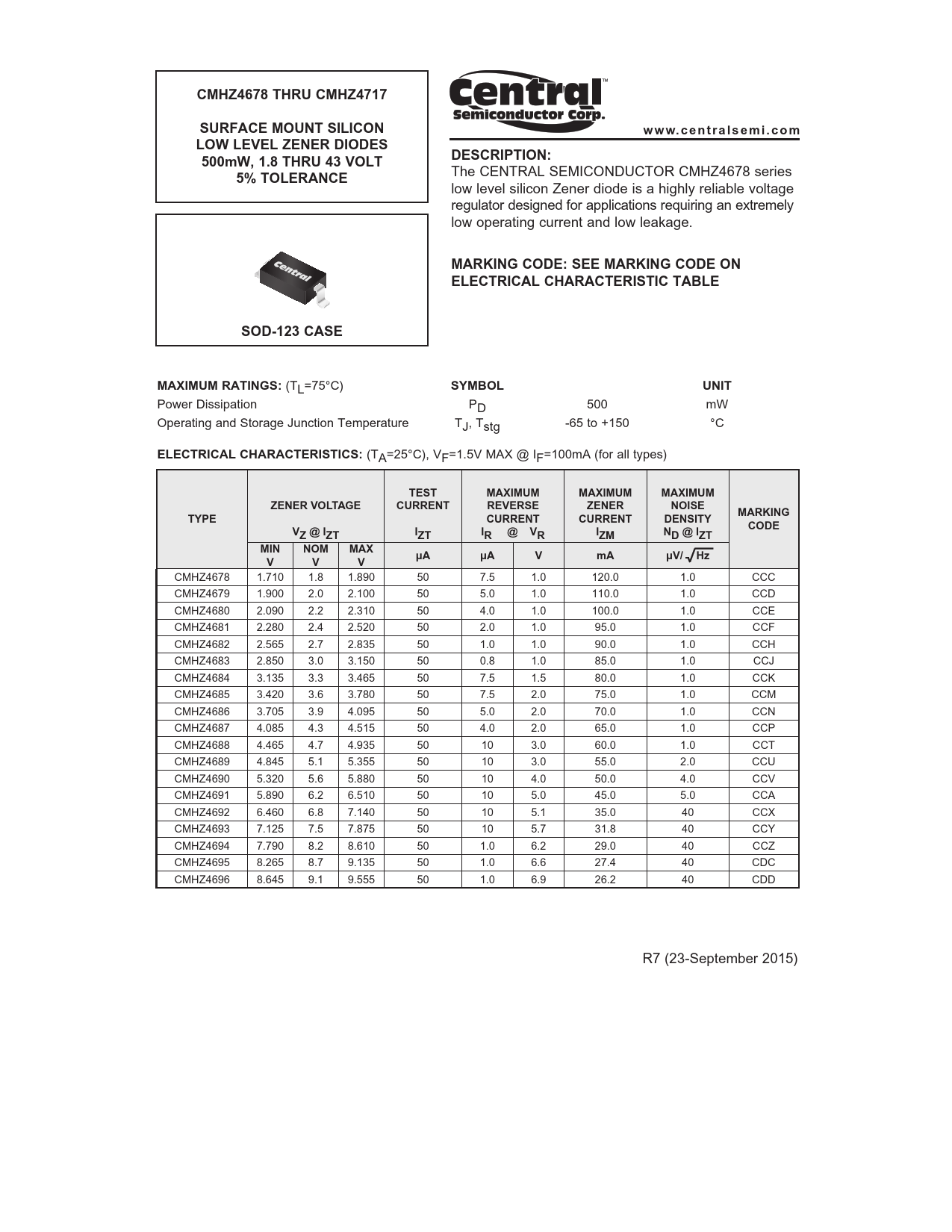 Datasheet CMHZ4678 - CMHZ4717 (Central Semiconductor)