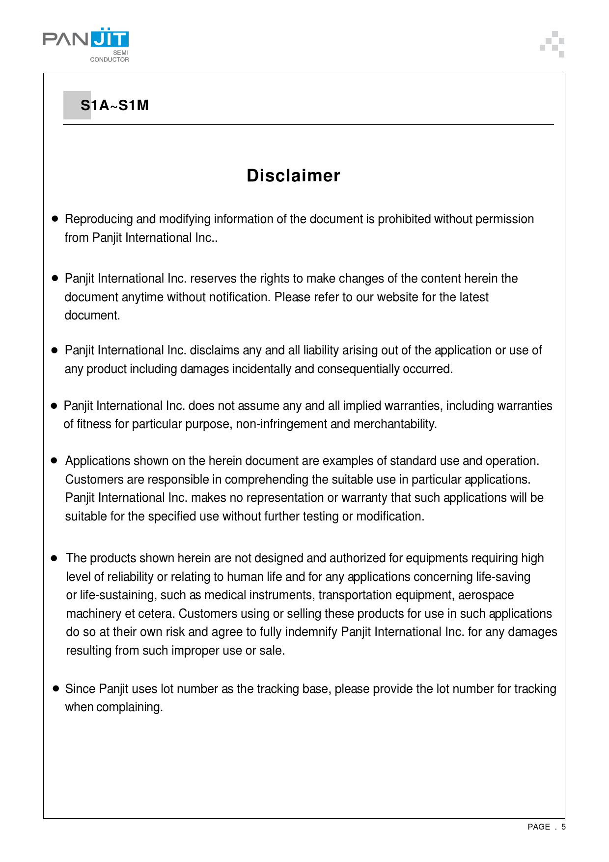 Datasheet S1A, S1B, S1D, S1G, S1J, S1K, S1M (PanJit) - 5