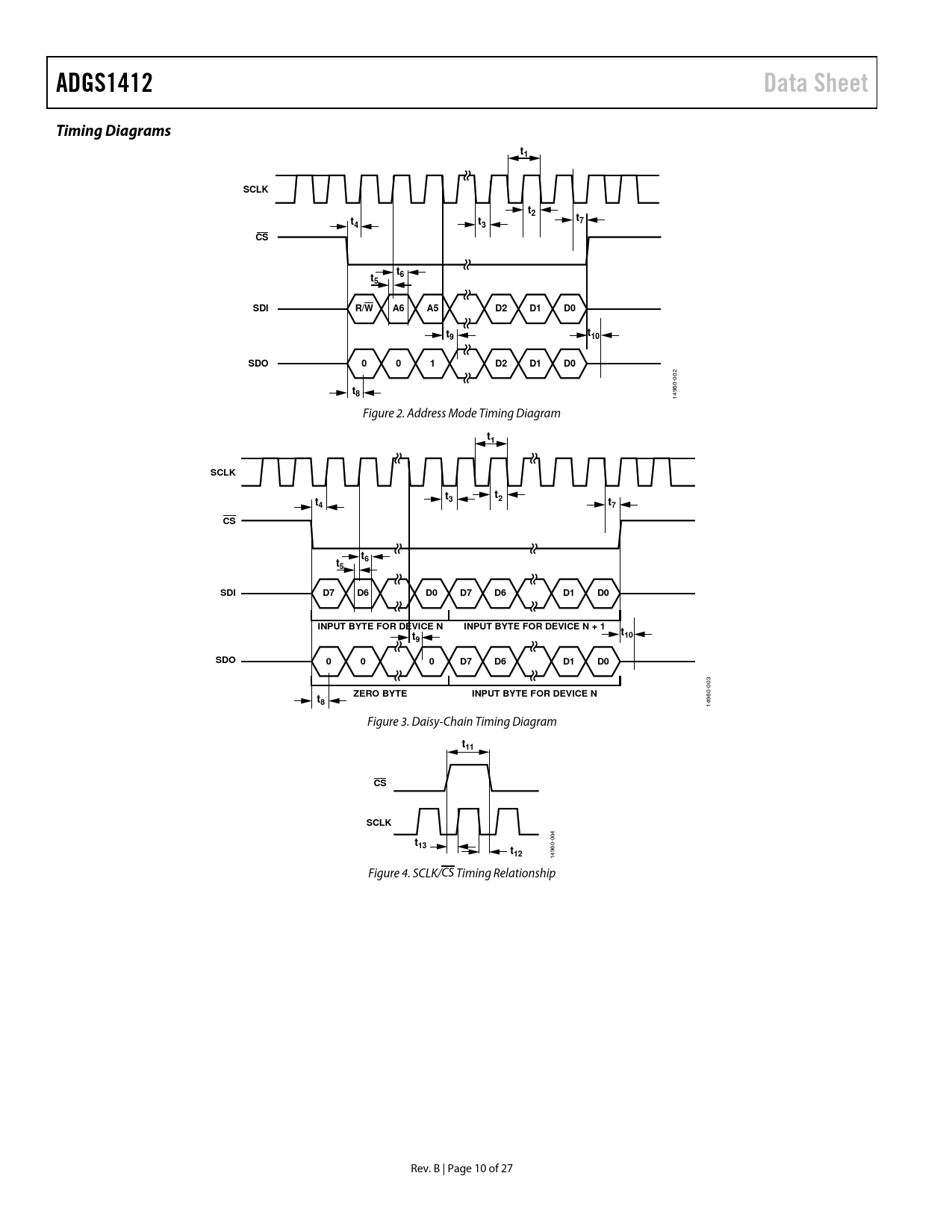 | 页数 / 页 | 27 / 10 — ADGS1412. Data Sheet. Timing Diagrams. SCLK. SDI. R/W. SDO. INPUT BYTE … |
