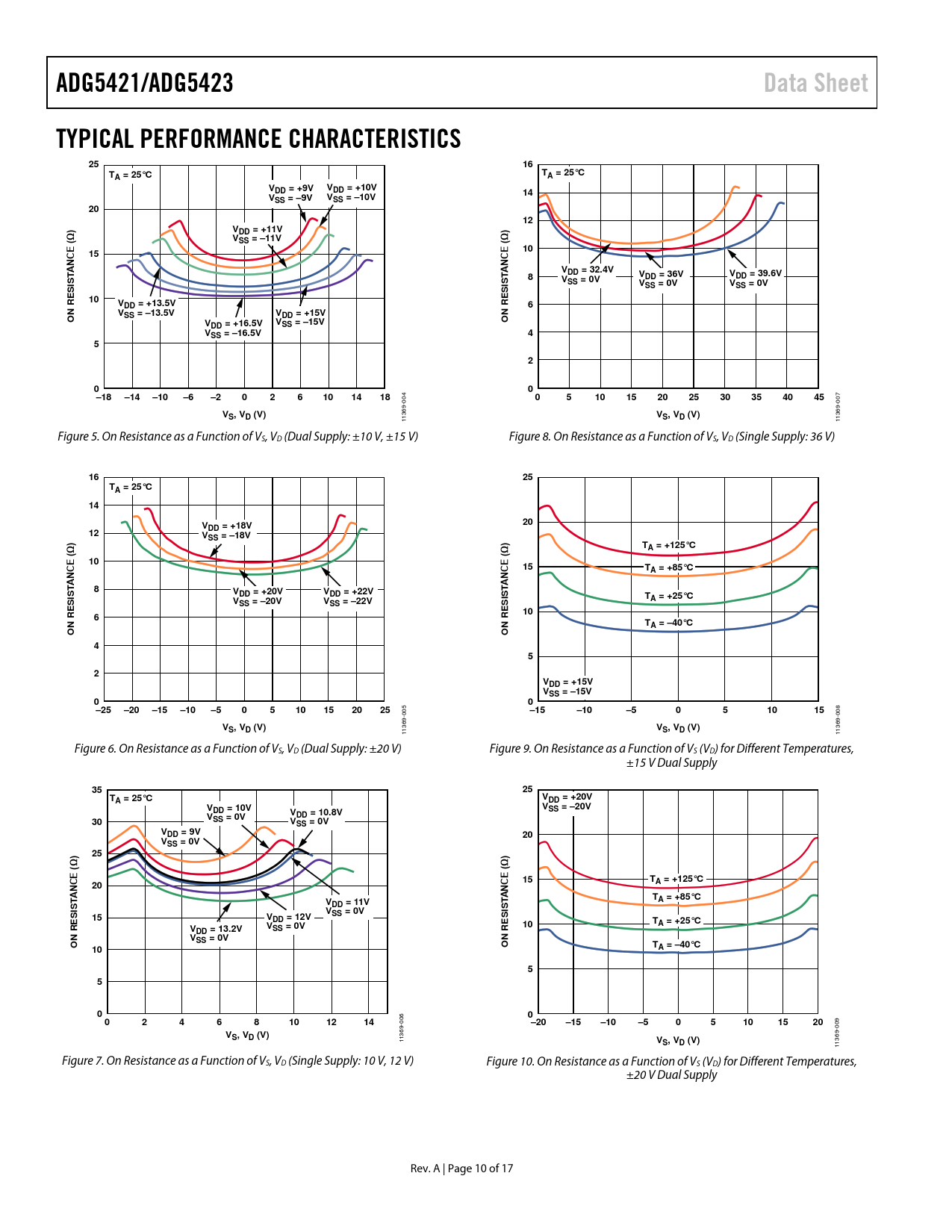 | 页数 / 页 | 17 / 10 — ADG5421/ADG5423. Data Sheet. TYPICAL PERFORMANCE CHARACTERISTICS. A = … |