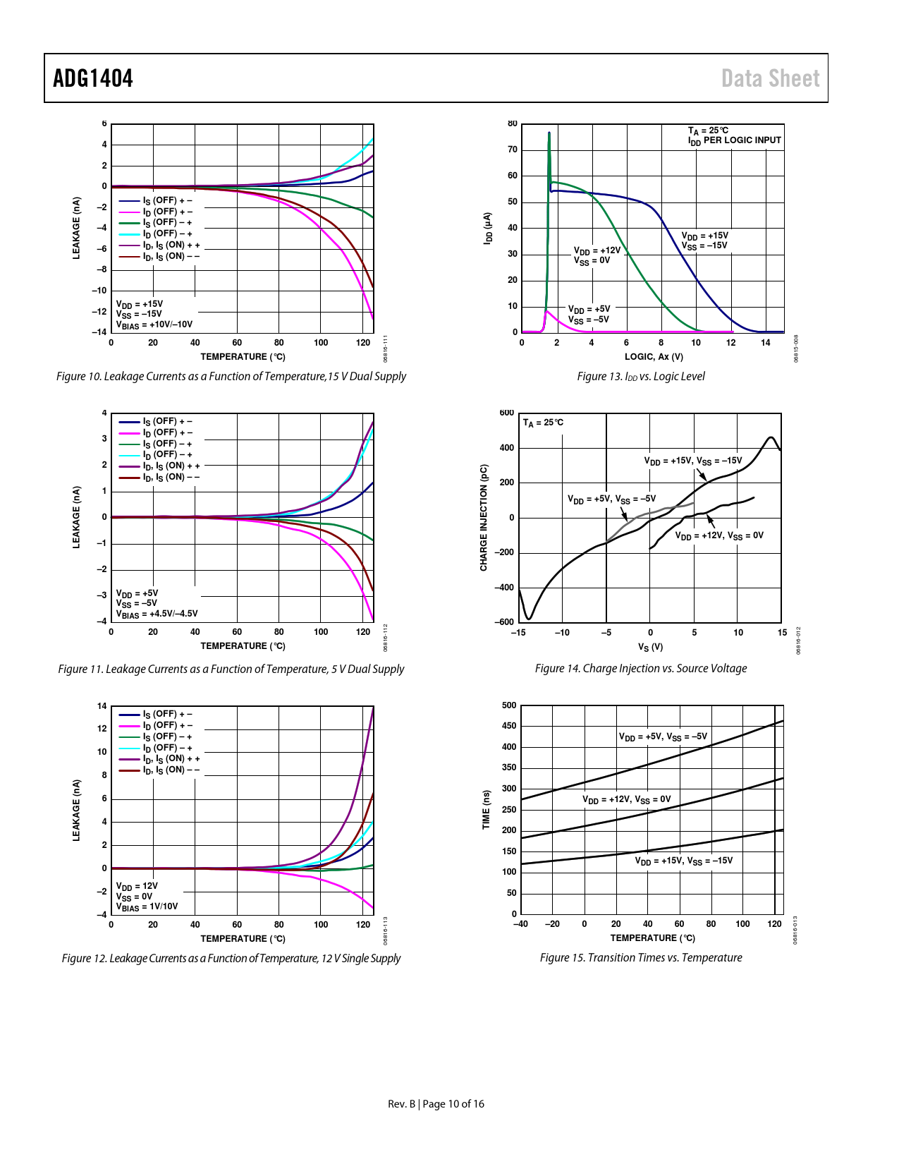 06816- 06815- Figure 10. Leakage Currents as a Function of Temperature,15 V Dual Supply Figure 13. IDD vs. Logic Level